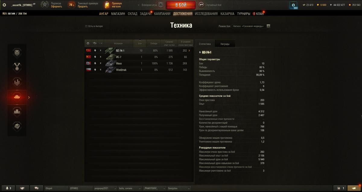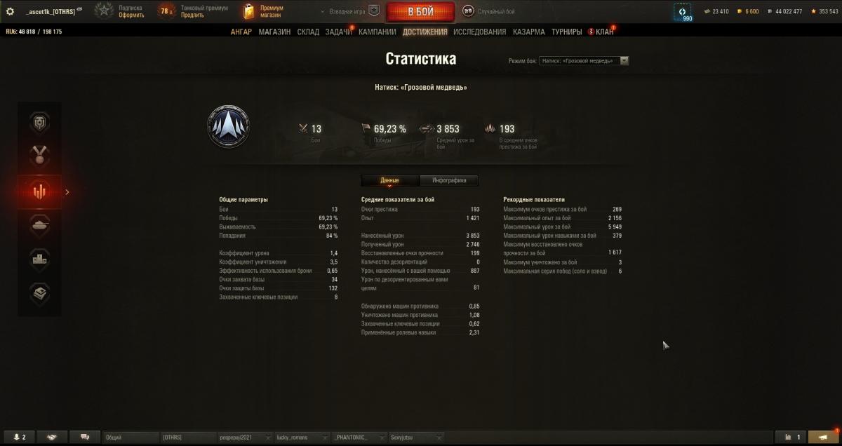 Фантомик откатал сессию из 15 боев в 4,2к Гвардиан - в 4,1к А в телеге видел, что MeanMachins вечером сегодня накидал 8,8к на карте Минск