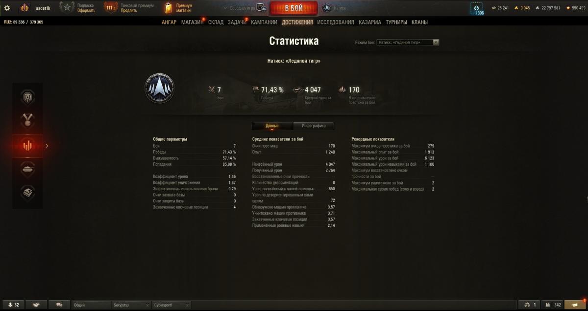 Все равно как-то не сходится. Я так и не понял, почему мне после квалификации накинули всего 100 очей. Не, ладно бы я по пол боя афк стоял, союзников выталкивал и т.п. Но у меня после квалы было 186 Очков Престижа в среднем, 3.8к урона, коэф. урона 1.7, коэф. уничтожения 6. Средний Опыт на танке 1.5к (с премом). Ну то есть даже по всем доп показателям, ИМХО, это явно должно было быть не на 100 Очков, и самое дно Железа... так что непонятно