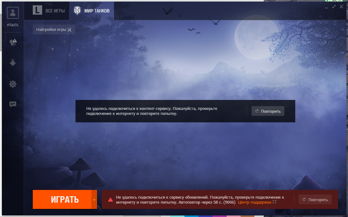 Целый выдаёт такую ошибку. Не обновляется. Периодически пишет, что используется актуальная версия игры, при этом в игру не пускает. Понятно, что подключение к интернету есть. Компьютер, как советует мудрая поддержка игры перезагружал.
