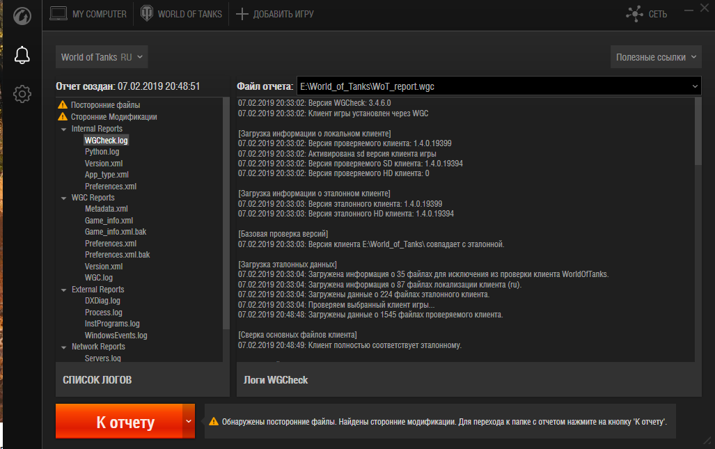 http://cdn-frm-eu.wargaming.net/4.5/style_images/wg/snapback.pngkoljan_86 (07 Фев 2019 - 23:57) писал: Удалите модификации клиента игры:1. Закройте клиент World of Tanks.2. Скачайте с нашего сайта архив.3. Распакуйте архив, поместите bat-файл в корневой каталог игры (например, C:\Games\World_of_Tanks) и запустите его. Очистите кэш игры. Для этого надо сделать следующее: 1. Закройте клиент игры 2. Скачайте архив 3. Разархивируйте его и запустите bat-файл от имени Администратора ( для этого нажмите на файл правой клавишей мыши и из выпадающего списка выберите "Запуск от имени администратора" ) Если проблема сохранится Создайте файл отчета WGCheck и прикрепите к сообщению. Как прикрепить файл к посту? Спасибо , все заработало
