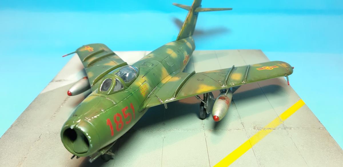 Итак, продолжаем серию работ по переделке исходных моделей в божеский вид. Была у меня модель Миг-17 от чешской фирмы "Smer" в 1:48. (Кстати в удивительно приемлимом качестве)стоял себе такой некрашеный миг ВВС СССР и грустил. Но не долго. Модель была извлечена из закромов и призвана оказывать помощь Северному Вьетнаму в борьбе с американскими агрессорами. По модели : Tamiya, лак для волос ,смывка, масляные точки. Подставка: аэродромные плиты для 1:72 от ICM , сделана имитация уголка стоянки.(накрашена и ободрана разметка). Пушки: иглы от шприца, (на масштаб откровенно наплевал,как и с плитами). В перспективе надо бы добавить вьетнамских ребят из БАО, но чего нет,того нет. Приятного просмотра. П.с: фото без фотошопа.