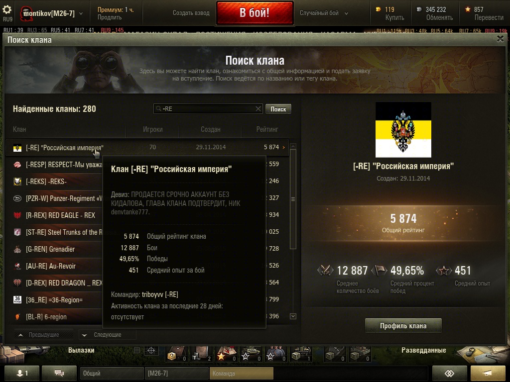 [M26-7]Отряд им. Ernesto Rafael Guevara de la Serna ВОЛЯ есть путь к ПОБЕДЕ. http://cdn-frm-eu.wargaming.net/wot/ru/uploads/monthly_05_2016/post-1023659-0-38822200-1462720082_thumb.png Клан любительский, для тех, кто любит эту игру, ориентирован на участие в войнах на глобальной карте, участие в турнирах, проводимых компанией разработчиков игры (ВГ), а также проведение вылазок в укрепрайонах. Всем Доброго Времени Суток. Наш клан ведёт набор активных бойцов для совместной игры в битвах за укрепрайон, участия в боях на глобальной карте, различных ивентах и акциях от ВГ. прайм тайм с 20:00 до 23:00 по МСК Требования к новобранцам:1) Возраст от 18лет, адекватность, общительность, стресоустойчивость, хорошее чувство юмора, стабильный онлайн Находиться в игре круглые сутки и каждый день не обязательно, но и пропадать на долго, и без предупреждения у нас не принято. 2) Количество боёв от 10к, количество боёв в вылазках/гк от 100 3) Процент побед : а) на аккаунте от 48% б) на топтехнике от 50% с) для твинков от 55% .................................в редких случаях возможны исключения..................................... 4) Наличие в ангаре следующей топ техники : 6лвл. - т-37,Кромвель,Т-150,О-I,КВ-85, А-43. 8лвл. - ис-3,т-32.AMX CDC,Т-54 обл,RU-251. 10лвл - минимум одна единица. ..................................Наличие по одному танку из 6 и 8 уровней обязательно................................................ 5) Наличие РК, наш рк 7493980, вступление в группу обязательно, присутствие в РК при проведении клановых и командных боев обязательно! 6) Мы вне политики и расовой дискриминации!!! Заявки на вступление оставляем в военкомате Клана на внутриигровом портале , далее с Вами проведут собеседование заинтересованные Вашей кандидатурой офицеры клана, помните, прежде всего мы ждём интересных нам людей и тех, которым будет интересно с нами побеждать, проигрывать и получать море фана от общения и игры друг с другом. Ссылка на профиль клана http://ru.wargaming.net/clans/51959/?utm_content=wotprofile_my_clan&utm_source=global-nav&utm_medium=link&utm_campaign=wot-forum Ссылка на группу в ВК http://vk.com/club56597207 Наш сайт http://m26-7.wot.pw/