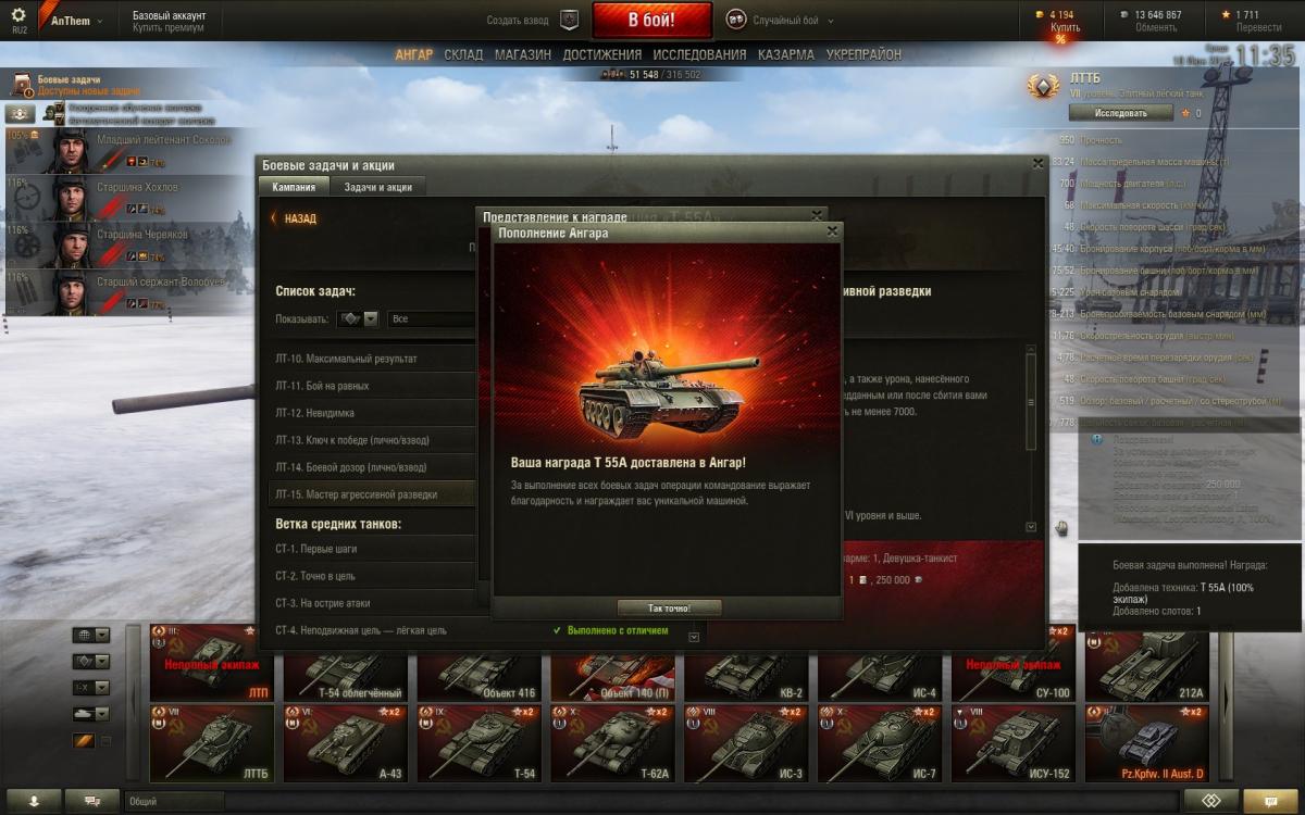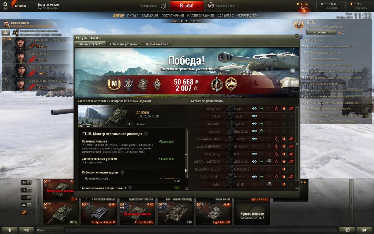 Играл 3-4 дня на 5ти ЛТ, Булька, Рушка, 13 90, Т49, ЛТТБ, дабы выполнить ЛТ-15. Были включены все режимы боя. Что нужно, не выпадало. Потом плюнул, выключил все режимы кроме основного и пошли открытые карты. Несколько раз подходил к выполнению и не хватало немного, то 500 урона, то 200. В итоге выполнил на Огненной Дуге. Но там вообще всё совпало. Я был один светляк на команду, много ПТ, а СТ заняли центр. Законтрил вражескую Рушку и по засвету начали вливать тонны урона. Но вот что я скажу, выполнить ЛТ-15 на Редшире, на Лайвоксе, куда проще чем на Малиновке и Прохоровке, потому все знают места ЛТ и уже мастерски его контрят. Только нубы сделают вид, что не знают, где ты стоишь. http://i.piccy.info/i9/e0ecd225c387dcda3482ed8db8aaee2e/1458808681/104411/1014688/shot_058_800.jpghttp://i.piccy.info/a3/2016-03-24-08-38/i9-9589214/800x500-r/i.gif