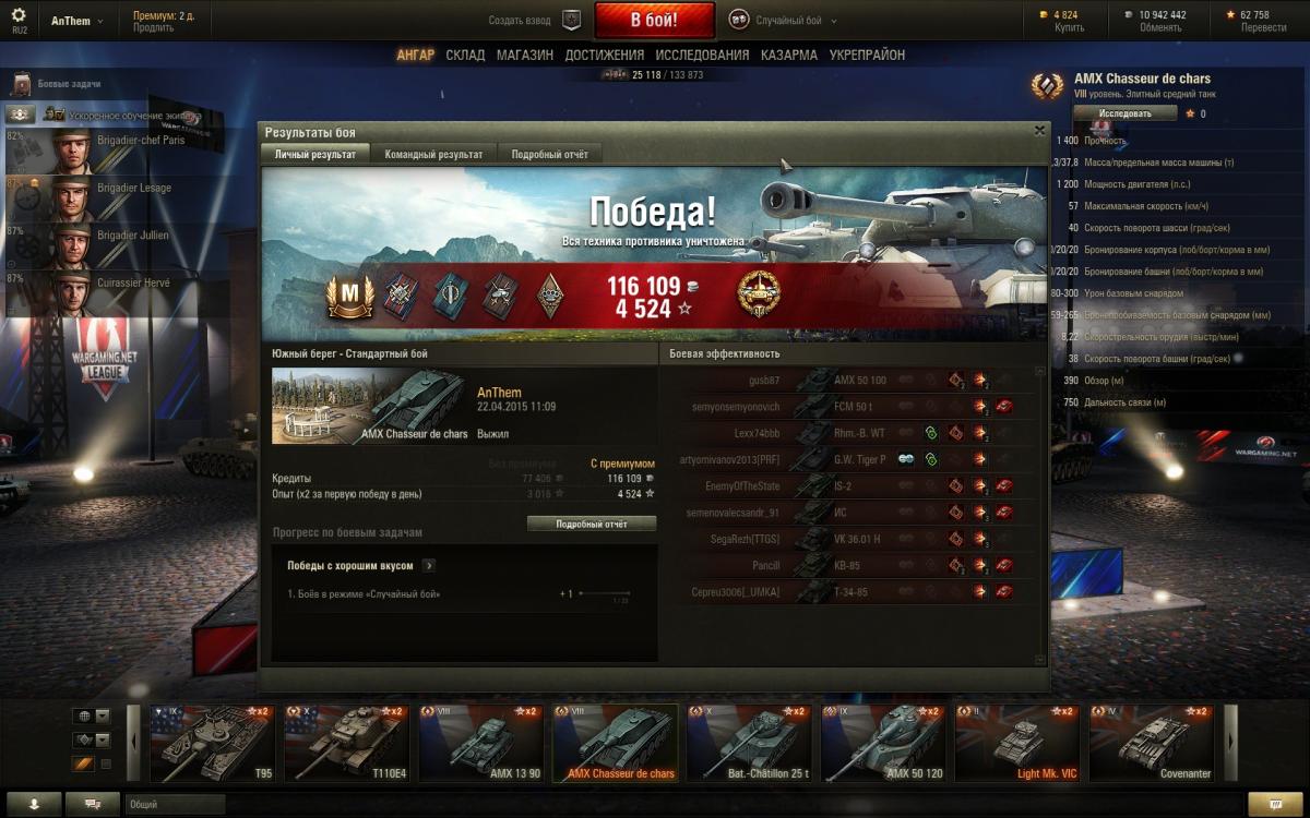 Супер танк, правда устаёшь от геймплея, очень напряжные бои с головой. Но оно того стоит. Два Мастера подряд.