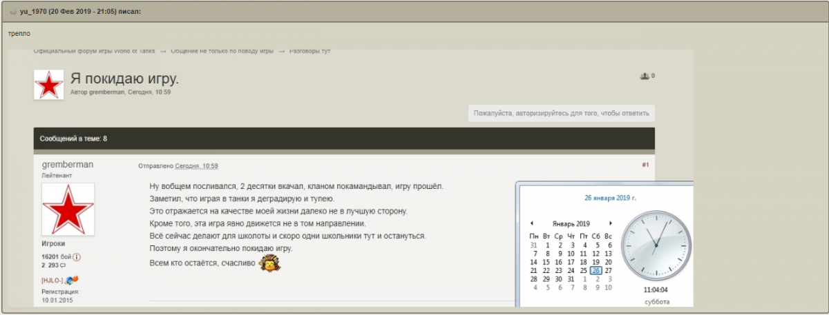http://cdn-frm-eu.wargaming.net/4.5/style_images/wg/snapback.pngDenni_DeVitos (18 фев 2019 - 17:55) писал: Прочёл,но всё же подскажите да или...? Ели бы "прочитал" не задавал вопросов. Видимо для тебя, слишком сложный там смысл. http://cdn-frm-eu.wargaming.net/4.5/style_images/wg/snapback.pngDenni_DeVitos (18 фев 2019 - 17:57) писал: Для этой игры это норма.Редко кто ответит по делу.Лучше начнут *** и показывать мол я такой вот "Самес")) Потому что таких "Валенков" как ты, с 10ка тем каждый день создают