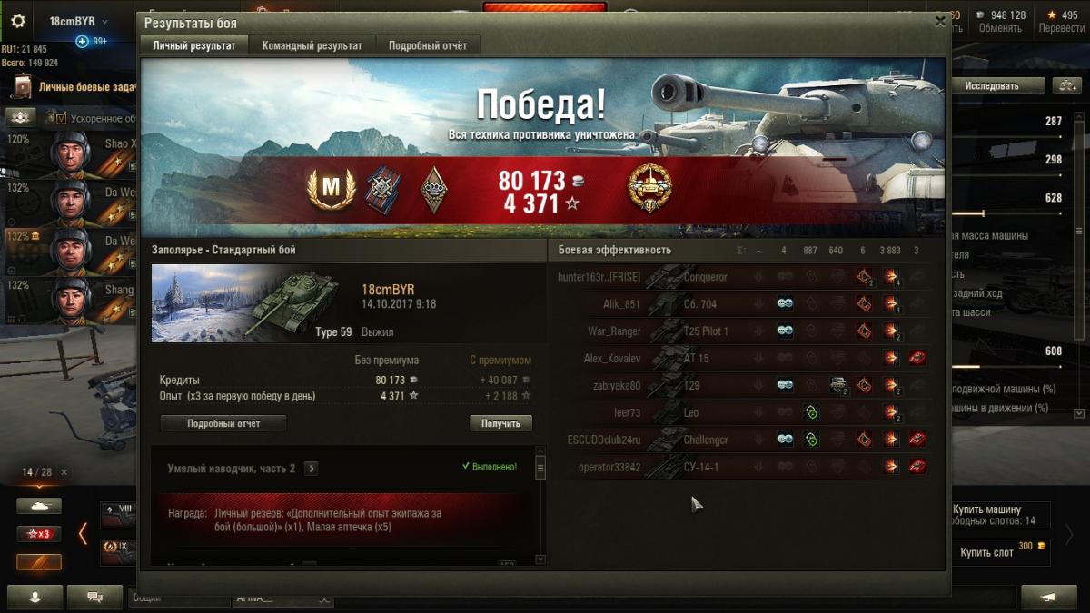 посмотри еще раз мой скрин, внимательно смотри. Я не вижу твоих доводов и тем более фактов, я тебе привел факт того как я нем играю на основе последние 157 боев, а ты его не выкатываешь и орешь что он уг, извини но при моих 20к боев в общем 8к на 59 скатать не смог, не потому что танк уг, а потому что нет столько времени.
