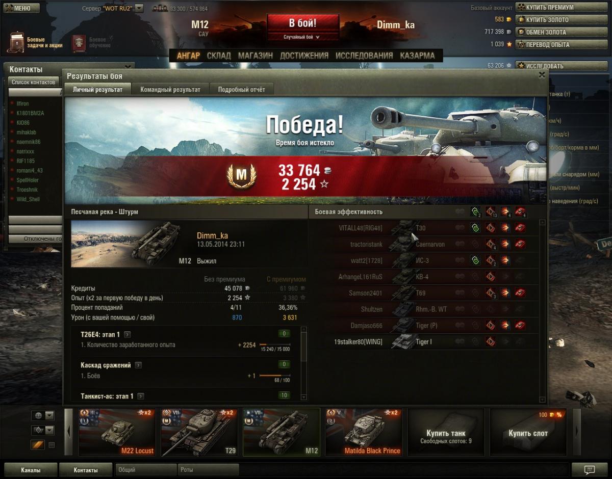 Мой мастер :) играю без ПА Победа!Бой: Песчаная рекаТанк: M12Получено опыта: 2 254 (x2 за первую победу в день)Получено кредитов: 57 398Достижения в бою: Знак классности «Мастер»