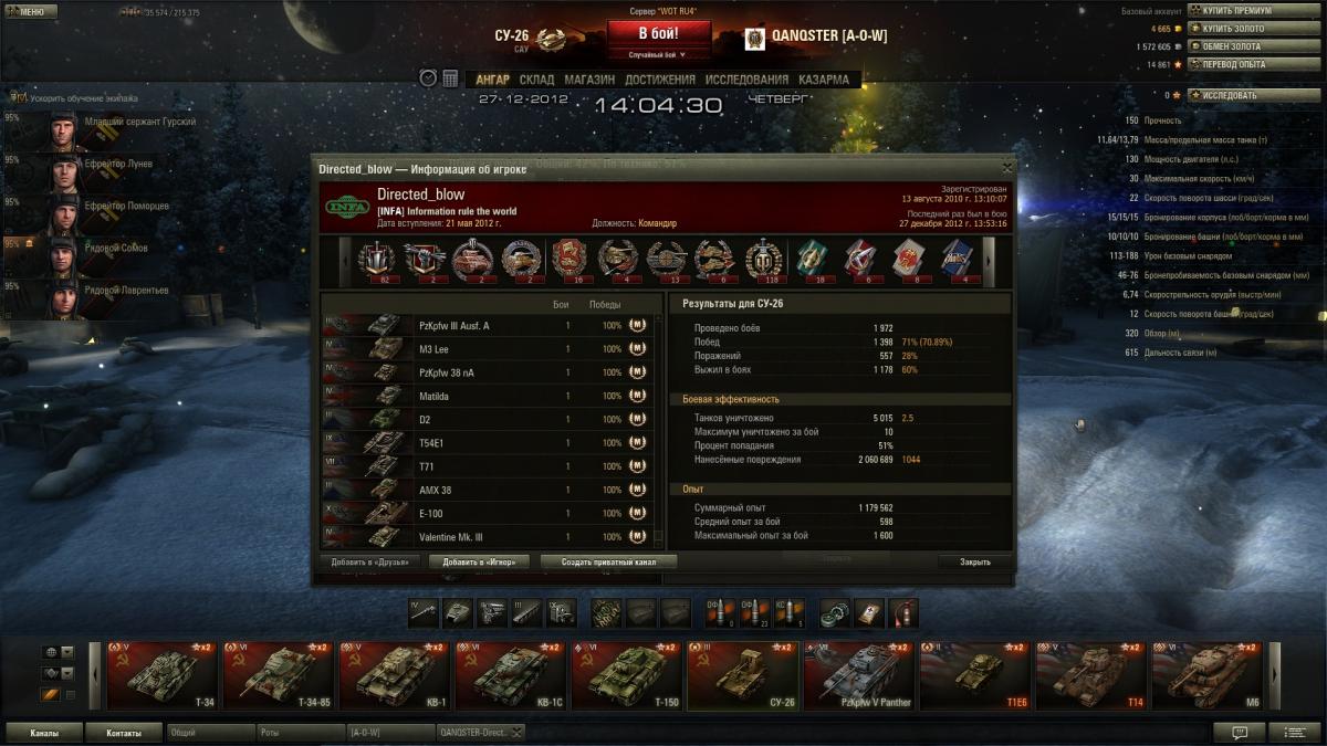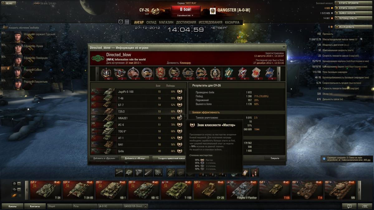 Всем привет. Кто ни будь может объяснить как такое возможно? Встретил этого человека в рандоме, я и он были на су 26, наша команда проиграла, сыграл он не особенно, взяв 1 фраг. Меня заинтересовала его статистика( выкладываю скрины), у него открыты наверно все танки, и НА ВСЕХ взят Мастер, причем даже на тех танках, на которых по 1 бою всего сыгранно. Что скажите?