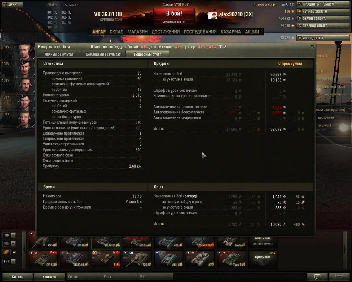 Кто-то может сказать, за что так много опыта дали? Имею ввиду чистый без према и х5. Ведь ничего особого-то не было сделано... Ни в какие темы отсылать не надо! Прочитано уже 300 раз. (Я о теме "Опыт") добавилАПД: КВ-3 полностью сам вынес=) __________________________________________ Мне страшо... Я начинаю привыкать к новой арте... http://cdn-frm-eu.wargaming.net/wot/ru/uploads/monthly_08_2013/post-1067277-0-41030700-1376238102_thumb.jpg В 0.8.6. всю продал... Теперь потихоньку опять беру...