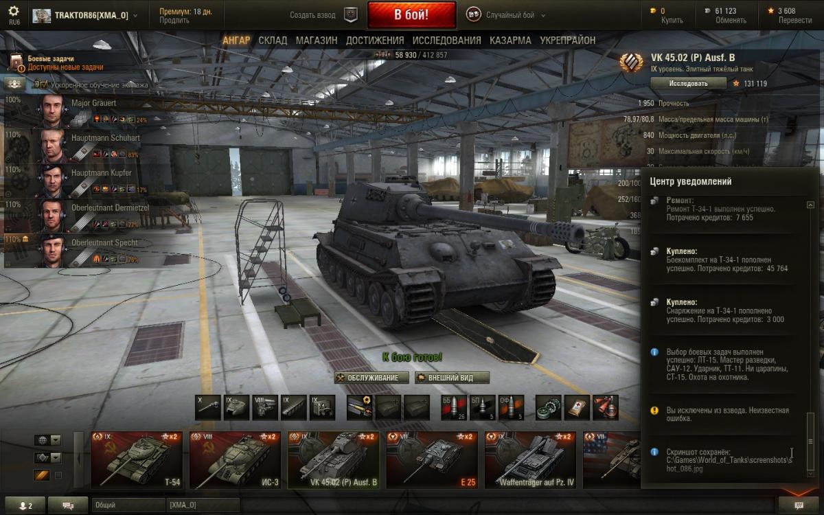 Здравствуйте уважаемые разработчики! Вопрос первый, выполнил лбз на лт15 с отличием, но в прогрессе показывает выполнено без отличия, скрин есть. http://cdn-frm-eu.wargaming.net/wot/ru/uploads/monthly_02_2015/post-1075337-0-89706500-1423737979_thumb.jpg Вопрос второй, после 5 минут боя, не получив не одного пробития на вк45.02, выкинуло в ангар, вместе с танком, появилось сообщение: вы исключены из взвода, неизвестная ошибка, показывает-техника не в бою, это как? скрин2. http://cdn-frm-eu.wargaming.net/wot/ru/uploads/monthly_02_2015/post-1075337-0-20740600-1423738038_thumb.jpg