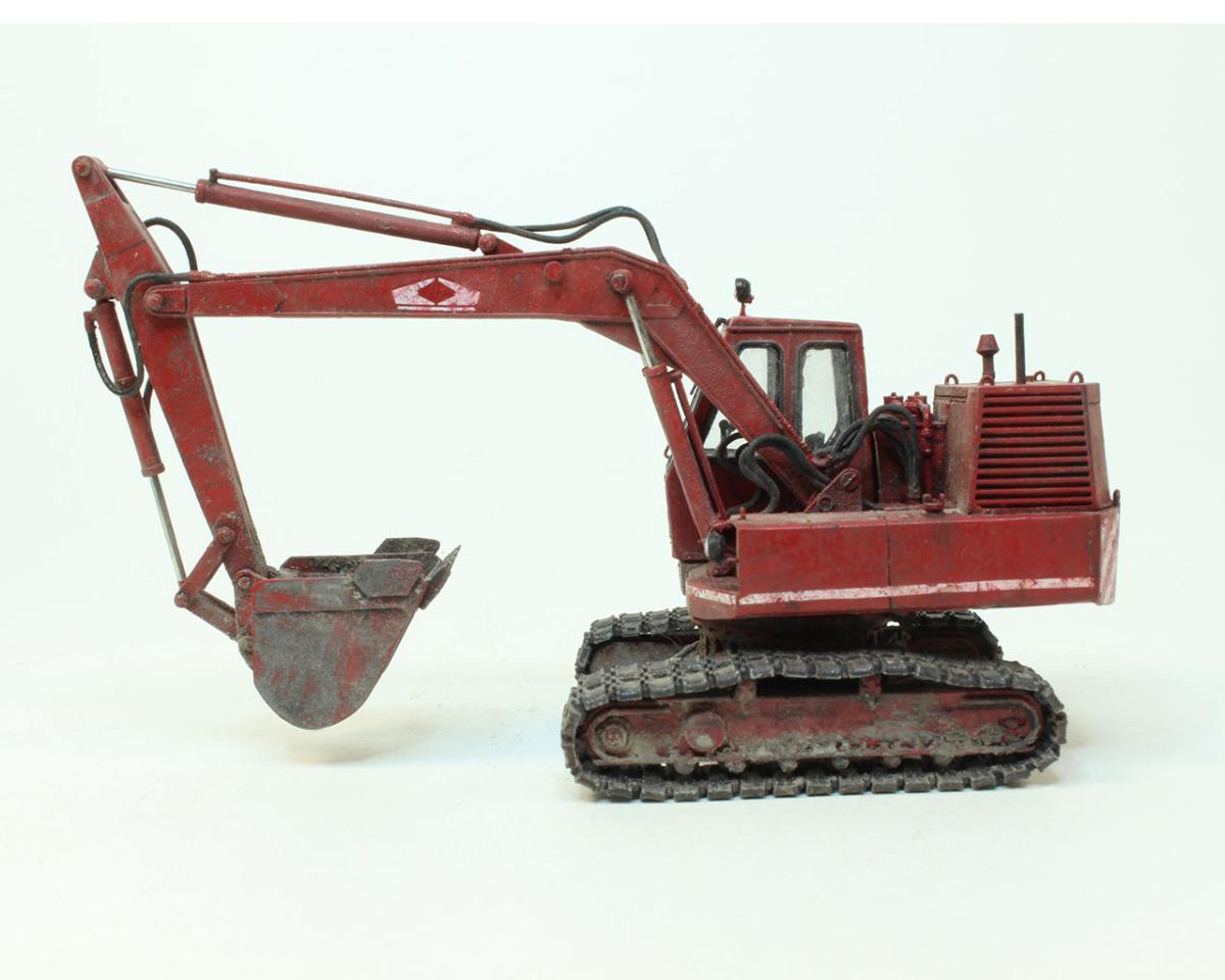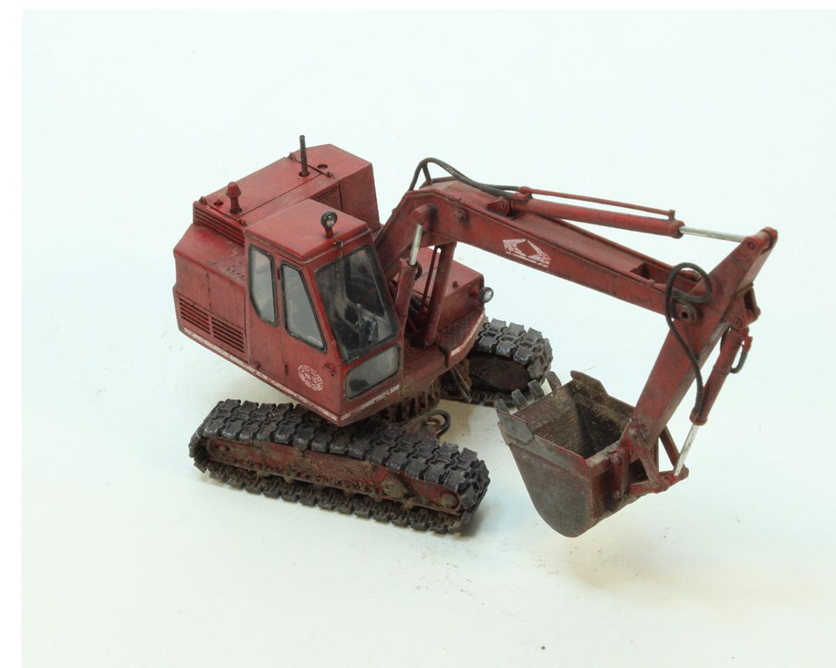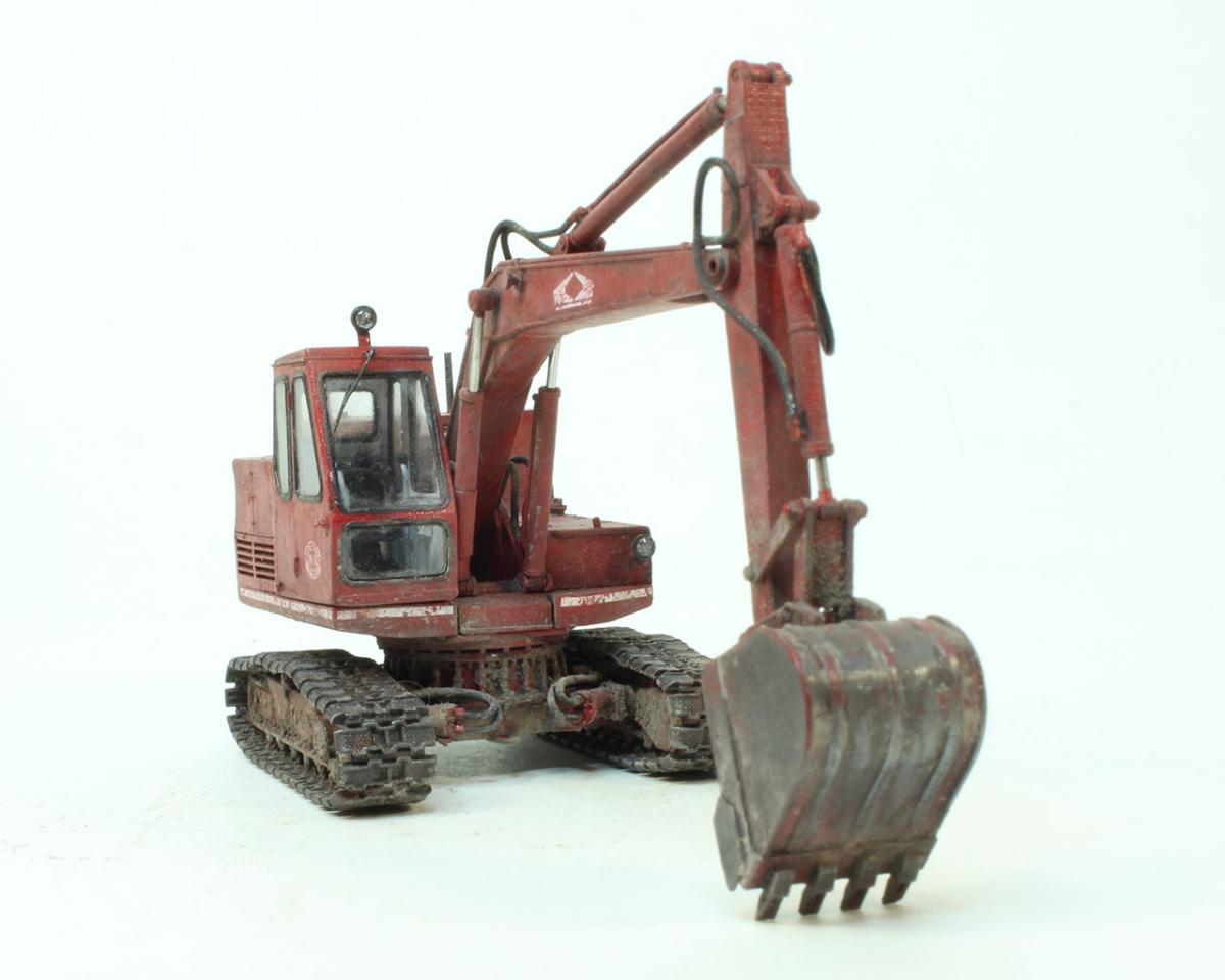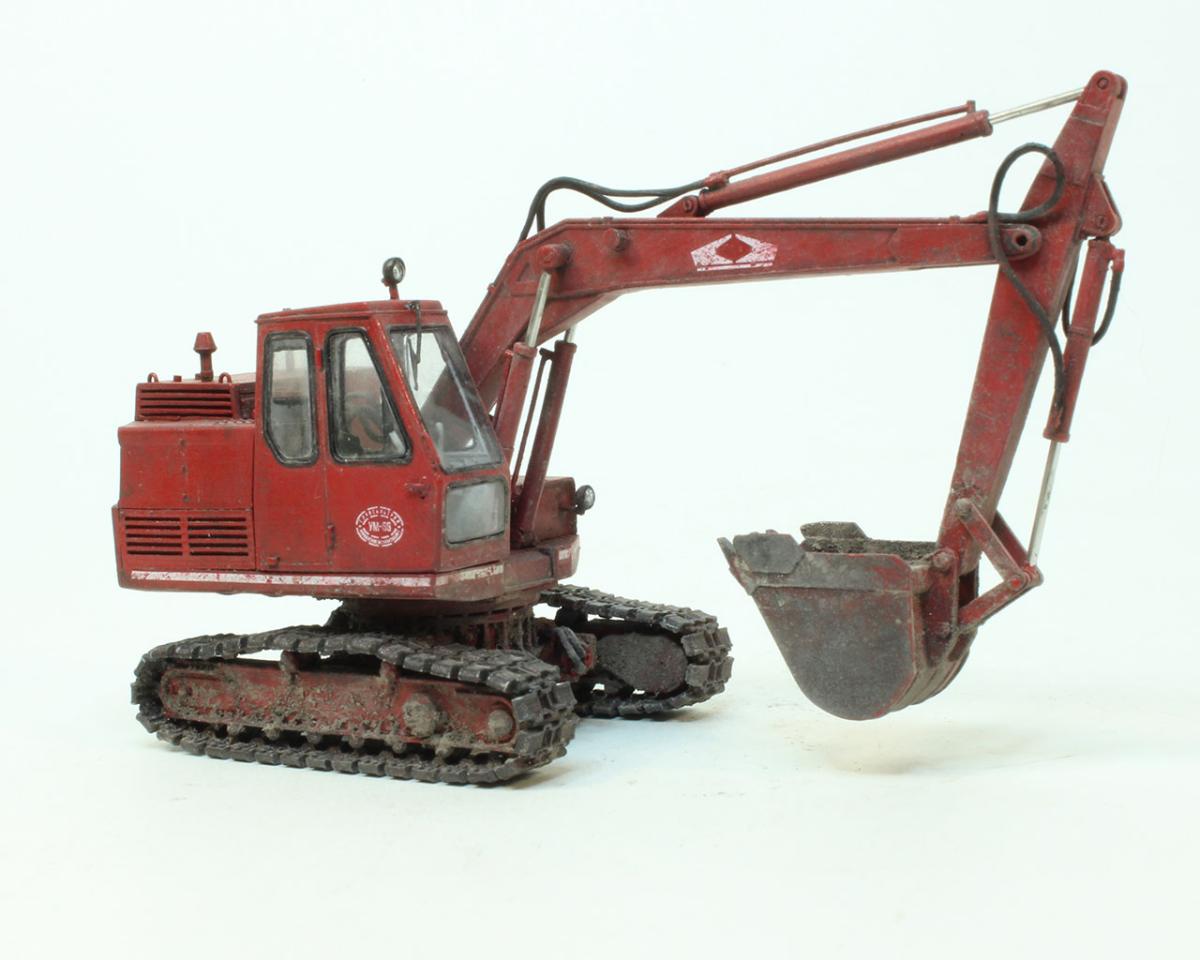 Модель в 72-ом масштабе выпущена компанией Gun Tower из Тулы. Смола серого цвета, довольно твёрдая, на некоторых деталях питатели пришлось отпиливать пилкой. Отливки хорошего качества, без изъянов. Гусеницы выполнены в виде двух полулент, с необходимыми загибами и провисами. На моторном отсеке добавил проволочные петли сверху. Шланги на подвижных участках гидросистемы сделал из компьютерного шлейфа, даже после покраски они остаются гибкими. Смоляные штоки гидроцилиндров заменил на подходящие по диаметру медицинские иглы для инъекций.Как и планировал, модель получилась с подвижными элементами – платформа поворачивается, стрела и ковш рабочие. Покрасил в классический красный цвет, тем более в декали есть элементы, подтвержденные фотографиями именно такого красного экскаватора. Красил эмалями Mr.Color и Revell . Эмблему сзади подкрасил белой темперой. Художественным маслом выполнил смывку, гусеницы натер пигментом MIG, карандашами АК и различными пигментами нанес следы эксплуатации и загрязнения. https://forum-mt-prod.lesta.ru/monthly_08_2025/post-10816738-0-07769600-1755091714_thumb.jpghttps://forum-mt-prod.lesta.ru/monthly_08_2025/post-10816738-0-66578200-1755091717_thumb.jpghttps://forum-mt-prod.lesta.ru/monthly_08_2025/post-10816738-0-83063400-1755091722_thumb.jpghttps://forum-mt-prod.lesta.ru/monthly_08_2025/post-10816738-0-82005300-1755091728_thumb.jpghttps://forum-mt-prod.lesta.ru/monthly_08_2025/post-10816738-0-55507100-1755091736_thumb.jpghttps://forum-mt-prod.lesta.ru/monthly_08_2025/post-10816738-0-21221800-1755091754_thumb.jpghttps://forum-mt-prod.lesta.ru/monthly_08_2025/post-10816738-0-17429100-1755091759_thumb.jpghttps://forum-mt-prod.lesta.ru/monthly_08_2025/post-10816738-0-33573600-1755091763_thumb.jpghttps://forum-mt-prod.lesta.ru/monthly_08_2025/post-10816738-0-00426100-1755091767_thumb.jpghttps://forum-mt-prod.lesta.ru/monthly_08_2025/post-10816738-0-03100600-1755091771_thumb.jpghttps://forum-mt-prod.lesta.ru/monthly_08_2025/post-10816738-0-93634500-1755091775_thumb.jpghttps://forum-mt-prod.lesta.ru/monthly_08_2025/post-10816738-0-49805200-1755091781_thumb.jpghttps://forum-mt-prod.lesta.ru/monthly_08_2025/post-10816738-0-43799200-1755091793_thumb.jpg