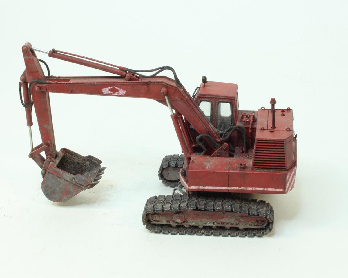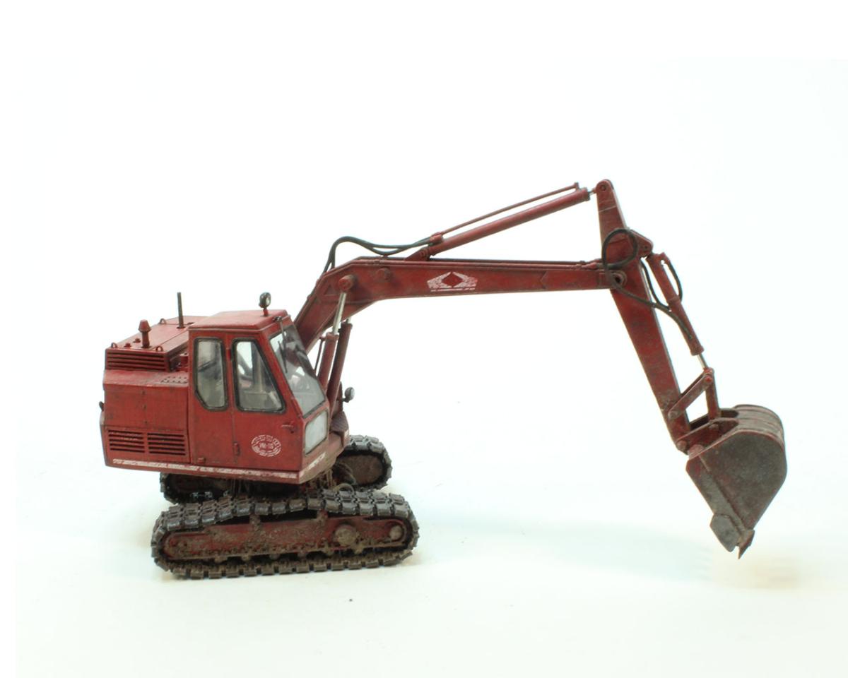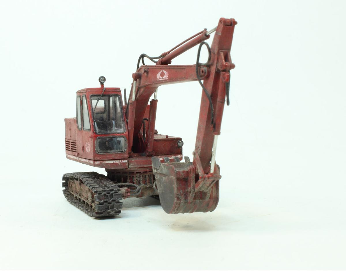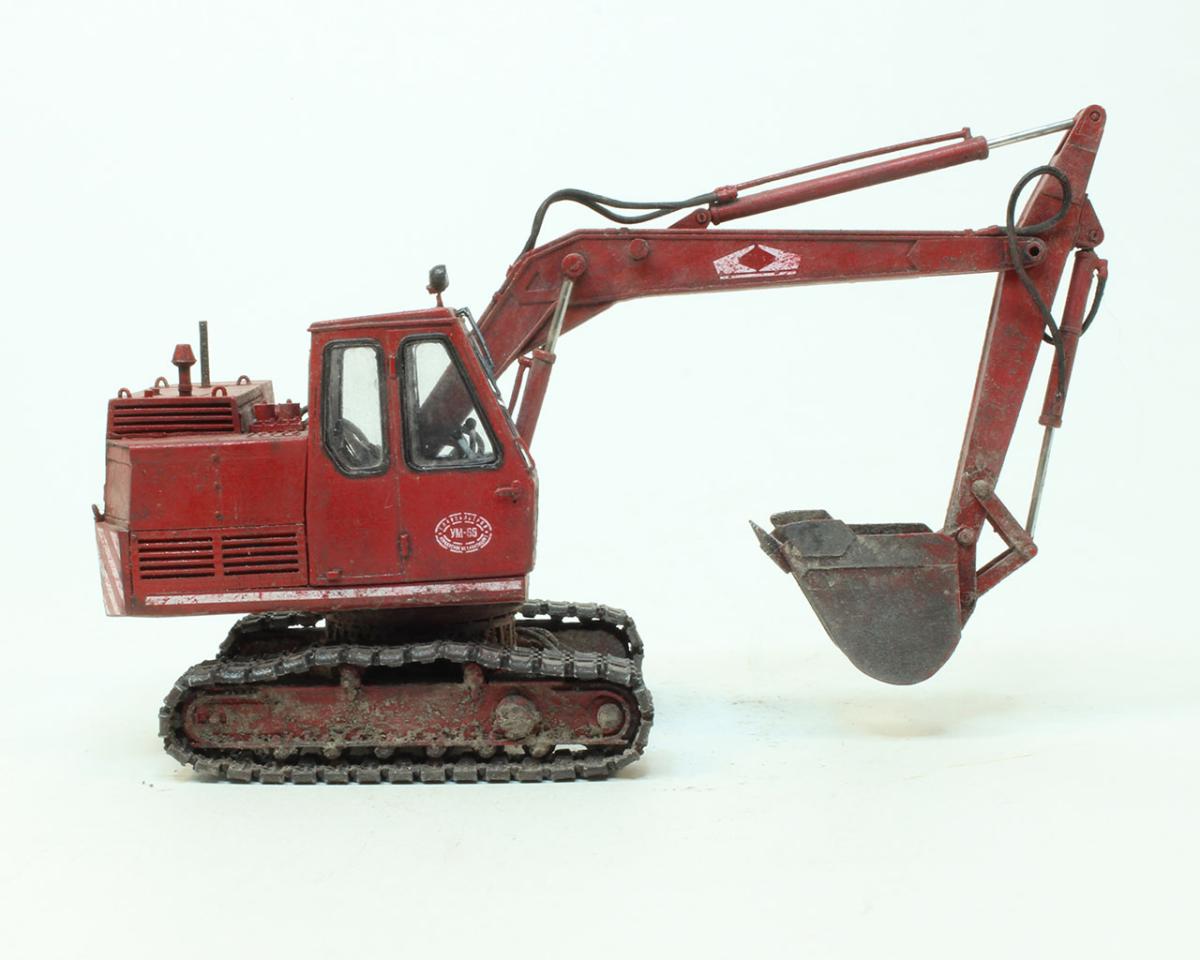 Модель в 72-ом масштабе выпущена компанией Gun Tower из Тулы. Смола серого цвета, довольно твёрдая, на некоторых деталях питатели пришлось отпиливать пилкой. Отливки хорошего качества, без изъянов. Гусеницы выполнены в виде двух полулент, с необходимыми загибами и провисами. На моторном отсеке добавил проволочные петли сверху. Шланги на подвижных участках гидросистемы сделал из компьютерного шлейфа, даже после покраски они остаются гибкими. Смоляные штоки гидроцилиндров заменил на подходящие по диаметру медицинские иглы для инъекций.Как и планировал, модель получилась с подвижными элементами – платформа поворачивается, стрела и ковш рабочие. Покрасил в классический красный цвет, тем более в декали есть элементы, подтвержденные фотографиями именно такого красного экскаватора. Красил эмалями Mr.Color и Revell . Эмблему сзади подкрасил белой темперой. Художественным маслом выполнил смывку, гусеницы натер пигментом MIG, карандашами АК и различными пигментами нанес следы эксплуатации и загрязнения. https://forum-mt-prod.lesta.ru/monthly_08_2025/post-10816738-0-07769600-1755091714_thumb.jpghttps://forum-mt-prod.lesta.ru/monthly_08_2025/post-10816738-0-66578200-1755091717_thumb.jpghttps://forum-mt-prod.lesta.ru/monthly_08_2025/post-10816738-0-83063400-1755091722_thumb.jpghttps://forum-mt-prod.lesta.ru/monthly_08_2025/post-10816738-0-82005300-1755091728_thumb.jpghttps://forum-mt-prod.lesta.ru/monthly_08_2025/post-10816738-0-55507100-1755091736_thumb.jpghttps://forum-mt-prod.lesta.ru/monthly_08_2025/post-10816738-0-21221800-1755091754_thumb.jpghttps://forum-mt-prod.lesta.ru/monthly_08_2025/post-10816738-0-17429100-1755091759_thumb.jpghttps://forum-mt-prod.lesta.ru/monthly_08_2025/post-10816738-0-33573600-1755091763_thumb.jpghttps://forum-mt-prod.lesta.ru/monthly_08_2025/post-10816738-0-00426100-1755091767_thumb.jpghttps://forum-mt-prod.lesta.ru/monthly_08_2025/post-10816738-0-03100600-1755091771_thumb.jpghttps://forum-mt-prod.lesta.ru/monthly_08_2025/post-10816738-0-93634500-1755091775_thumb.jpghttps://forum-mt-prod.lesta.ru/monthly_08_2025/post-10816738-0-49805200-1755091781_thumb.jpghttps://forum-mt-prod.lesta.ru/monthly_08_2025/post-10816738-0-43799200-1755091793_thumb.jpg