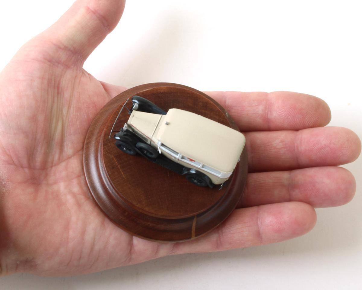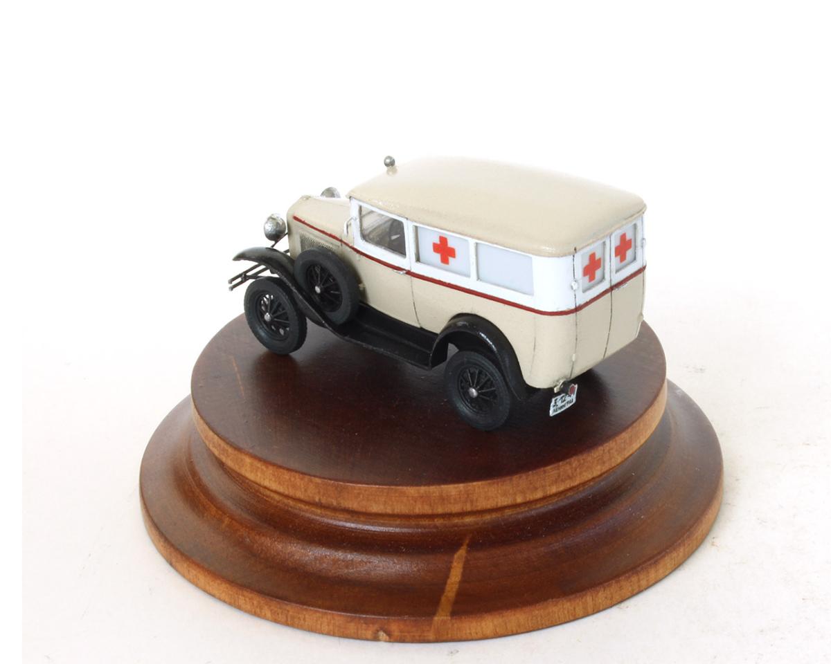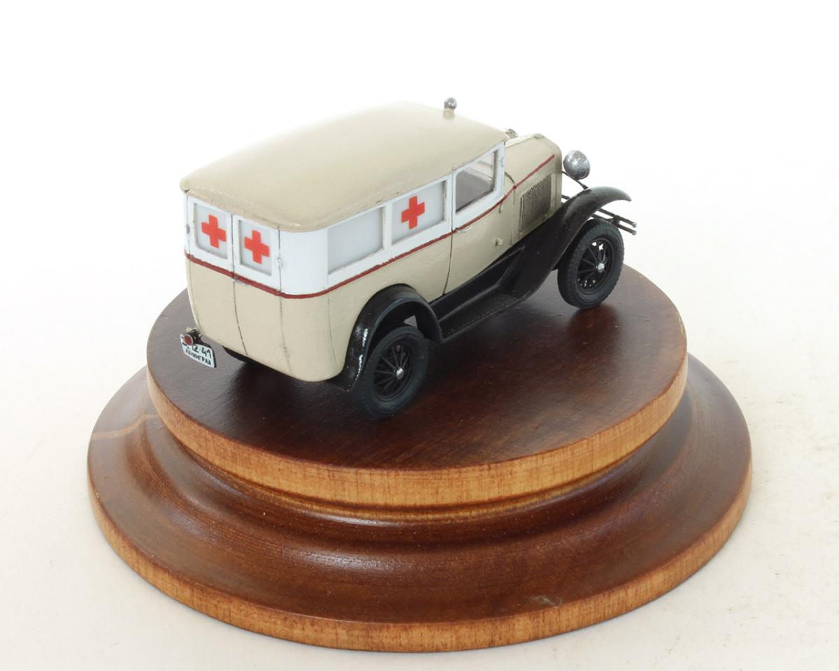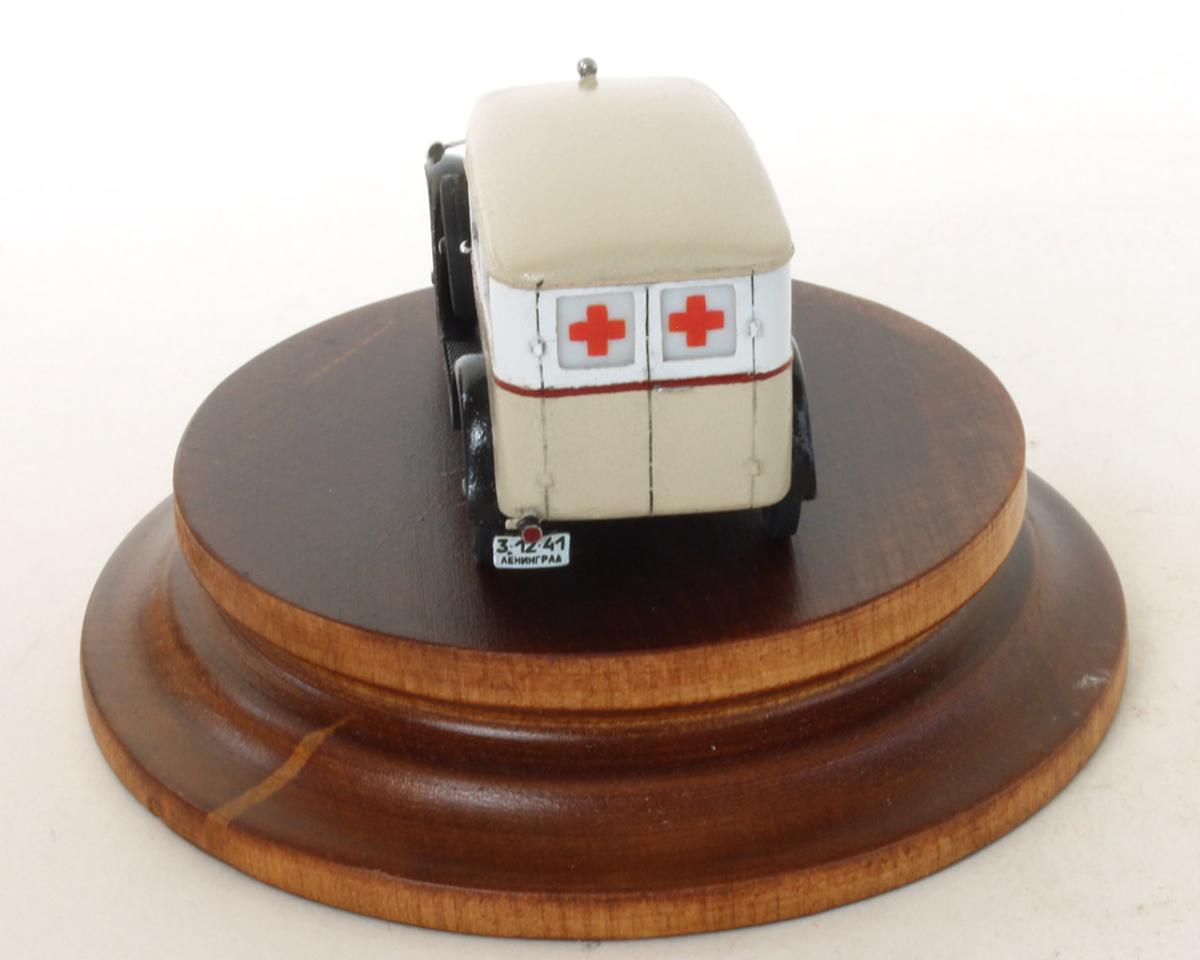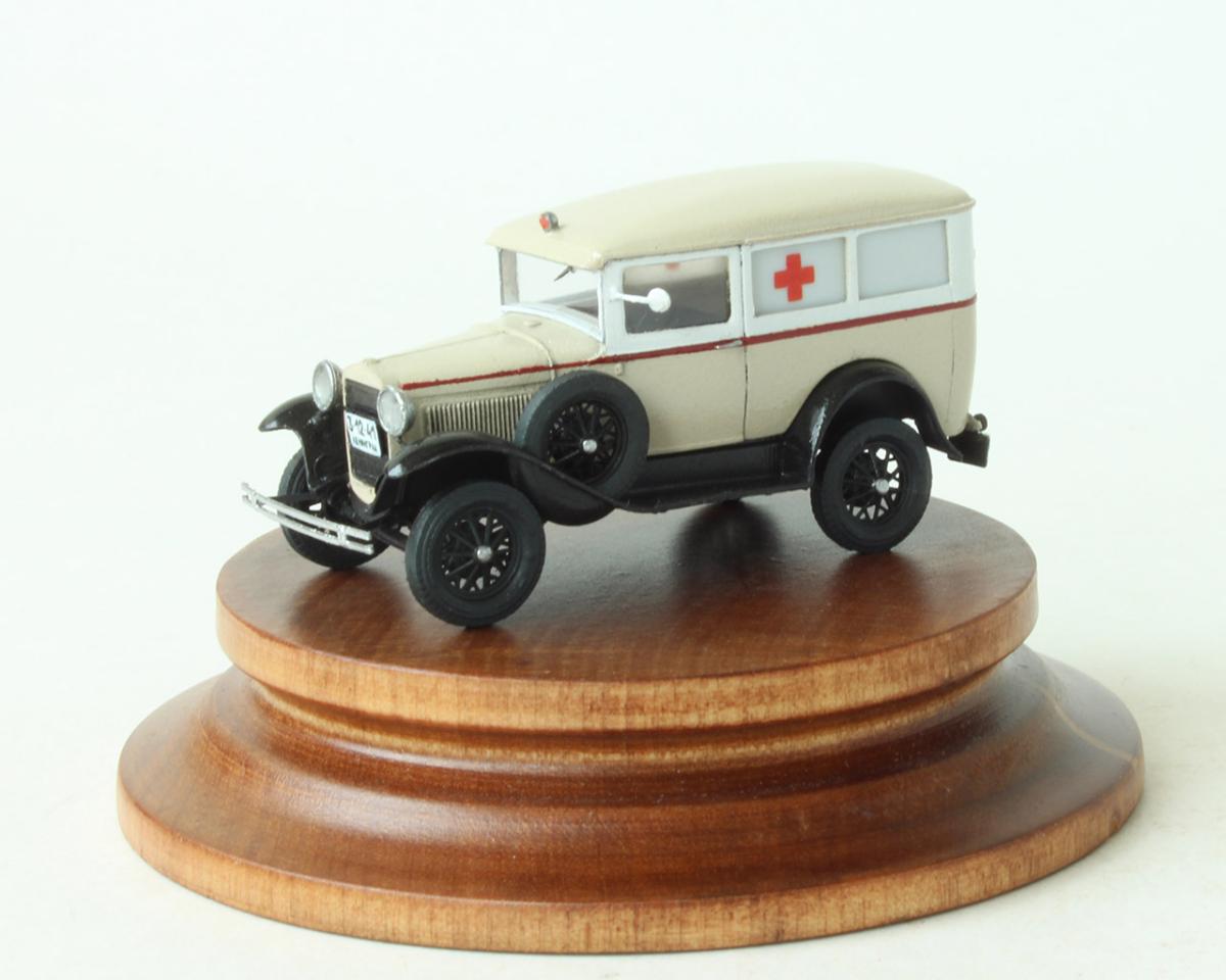 В 1933 году экспериментальный кузовной цех в составе Горьковского автозавода построил несколько опытных экземпляров санитарных автомобилей на базе пикапа ГАЗ-4. Но их серийный выпуск так и не был налажен. Санитарный отсек представлял собой деревянный каркас, который снаружи бы обшит листовым металлом, а внутри – фанерой. Медперсонал садился в кузов через задние распашные двери, таким же путем грузились носилки. Смоляная кроха выпущена небольшой партией московским производителем Lancer model в 72-ом масштабе. Сборка из коробки, остекление в наборе из какой-то мутной плёнки пришлось заменить на нормальный прозрачный пластик. Окраска согласно найденному фото отреставрированной машины, смывка масло, пылить и пачкать не стал. Модель мелкая и ажурная, чтобы не поломать закрепил на небольшой подставке. https://forum-mt-prod.lesta.ru/monthly_12_2025/post-10816738-0-08062200-1765466460_thumb.jpghttps://forum-mt-prod.lesta.ru/monthly_12_2025/post-10816738-0-46509600-1765466464_thumb.jpghttps://forum-mt-prod.lesta.ru/monthly_12_2025/post-10816738-0-34418900-1765466468_thumb.jpghttps://forum-mt-prod.lesta.ru/monthly_12_2025/post-10816738-0-45145400-1765466472_thumb.jpghttps://forum-mt-prod.lesta.ru/monthly_12_2025/post-10816738-0-00487500-1765466478_thumb.jpghttps://forum-mt-prod.lesta.ru/monthly_12_2025/post-10816738-0-94189700-1765466483_thumb.jpghttps://forum-mt-prod.lesta.ru/monthly_12_2025/post-10816738-0-24803200-1765466488_thumb.jpghttps://forum-mt-prod.lesta.ru/monthly_12_2025/post-10816738-0-91029500-1765466493_thumb.jpghttps://forum-mt-prod.lesta.ru/monthly_12_2025/post-10816738-0-05545400-1765466498_thumb.jpghttps://forum-mt-prod.lesta.ru/monthly_12_2025/post-10816738-0-10203900-1765466503_thumb.jpghttps://forum-mt-prod.lesta.ru/monthly_12_2025/post-10816738-0-09016600-1765466508_thumb.jpghttps://forum-mt-prod.lesta.ru/monthly_12_2025/post-10816738-0-41772200-1765466513_thumb.jpghttps://forum-mt-prod.lesta.ru/monthly_12_2025/post-10816738-0-29628100-1765466518_thumb.jpghttps://forum-mt-prod.lesta.ru/monthly_12_2025/post-10816738-0-39773500-1765466524_thumb.jpghttps://forum-mt-prod.lesta.ru/monthly_12_2025/post-10816738-0-18142900-1765466531_thumb.jpghttps://forum-mt-prod.lesta.ru/monthly_12_2025/post-10816738-0-15776800-1765466537_thumb.jpghttps://forum-mt-prod.lesta.ru/monthly_12_2025/post-10816738-0-36644200-1765466542_thumb.jpg