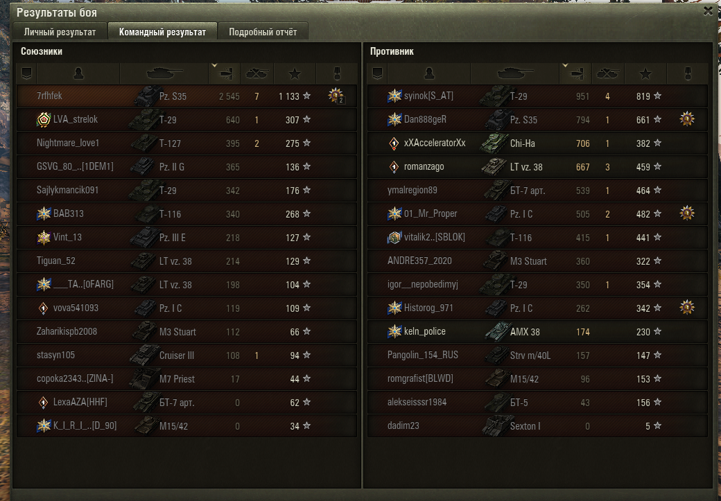 Цитата нужно не достигать результата больше союзников в конкретном бою, а достигать результата - победы, если тебе важно именно побеждать (я лично играю именно на победы). да, можно настреливать 2.5к на 8лвл среднего и быть 60+ по винрейту, но это достигается не просто навел-стрельнул-попал. а в общем понимании боя и умении найти место для нанесения урона и не получения в себя. Ты невнимательно читаешь посты. Повторю. Включилась серия и идет уже несколько дней, союзники все дохнут моментально практически никто не нанося урона. И как *** играть на победу 1 против 15 постоянно . У противников такого не бывает. Сегодня за 30 боев, 10 побед, ровно 33%, я ВСЕГДА в топ 3 по опыту и по урону.. Если я в топ 3 бои не понимаю, к каким союзникам меня ВСЕГДА программа ставит? На сим спор заканчиваю. Пошел вил ту лайф качать.