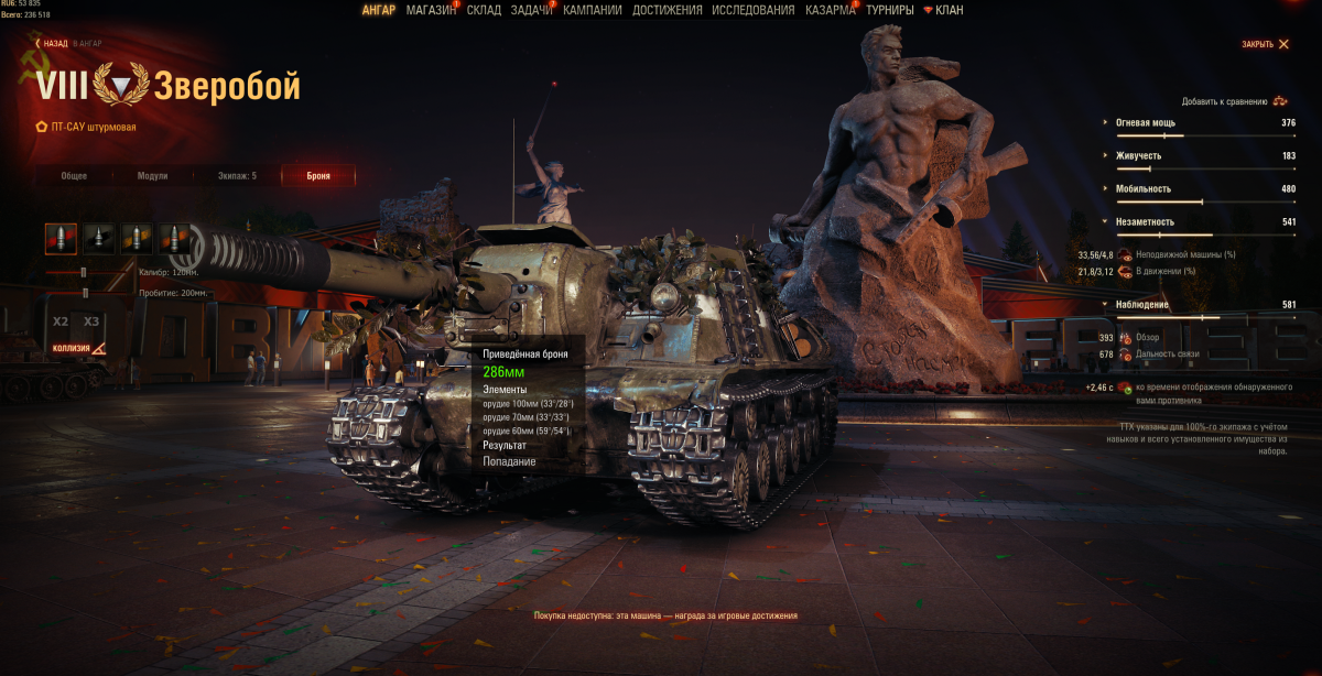 Привет всем адекватным людям. Смотрите какая жесть... Тут произошло просто кккомбо. ВНАЧАЛЕ смотрим скрины. Я на зверобое, в мою маску орудия под нехилым углом шмаляет об 283 со средним пробитием бб 226 и ср уроном 360. В месте, куда он выстрелил под данным углом броня маски составила по разным данным от 280 - это первое. Второе - под данным ракурсом пробития быть не может и игра должна посчитать этот выстрел как просто попадание без урона, потому как даже если пробивается маска под таким углом, то снаряд выходит на вылет не задевая основную броню танка, об этом говорит и мод и сторонние ресурсы. По урону и пробитию это ещё можно понять, ну подкрутила ему игра +25%, хотя тут тоже есть ньюанс, 226+25%=282,5. А как насчёт пробития в маску под таким углом с уроном, А?