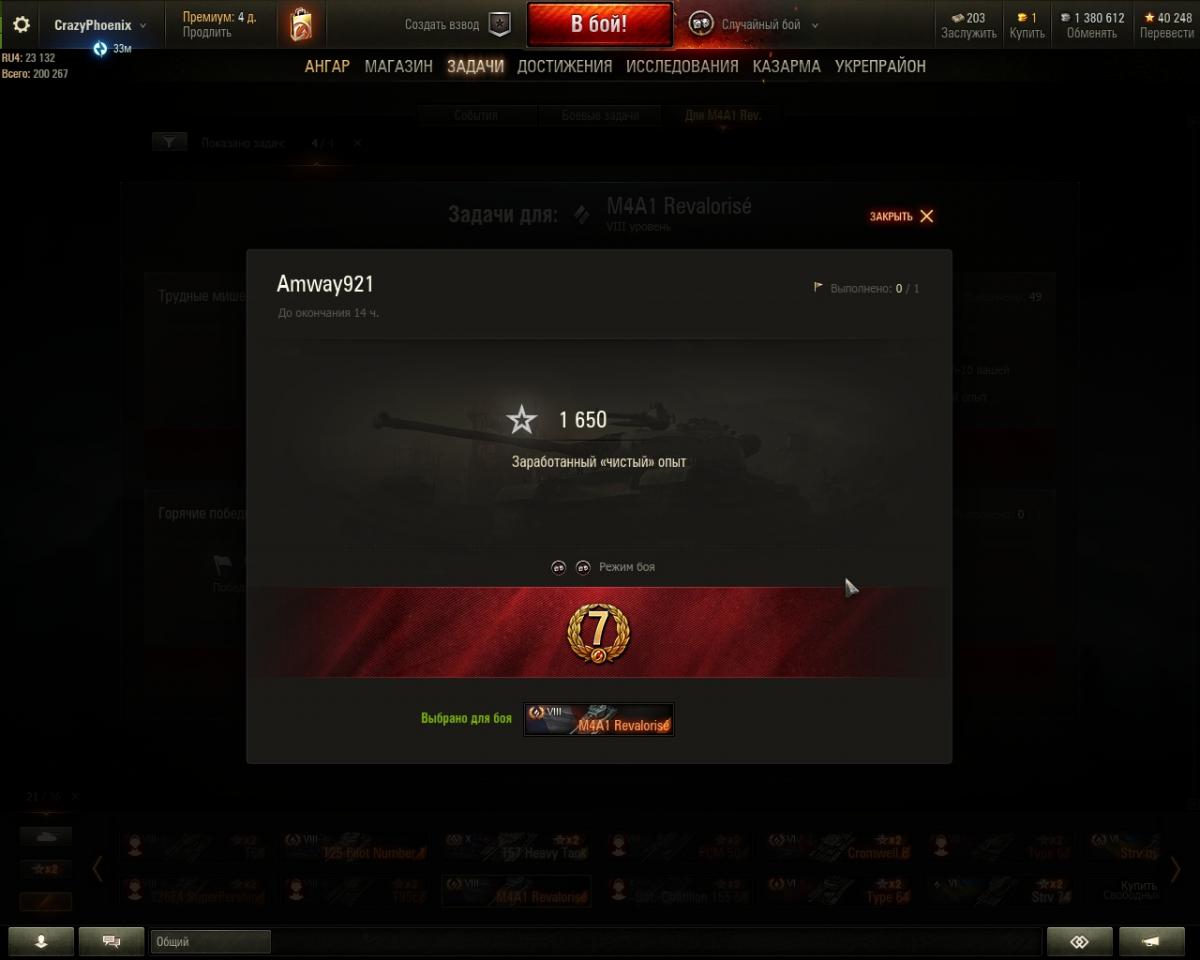 4. Акция в ангаре активна, все условия соблюдены. Почему нет начисленных 7 дней? II. Боевые задачи для активных игроков: Вторая суббота 23 сентября o Получить 1650+ чистого опыта o Награда: 7 дней према.