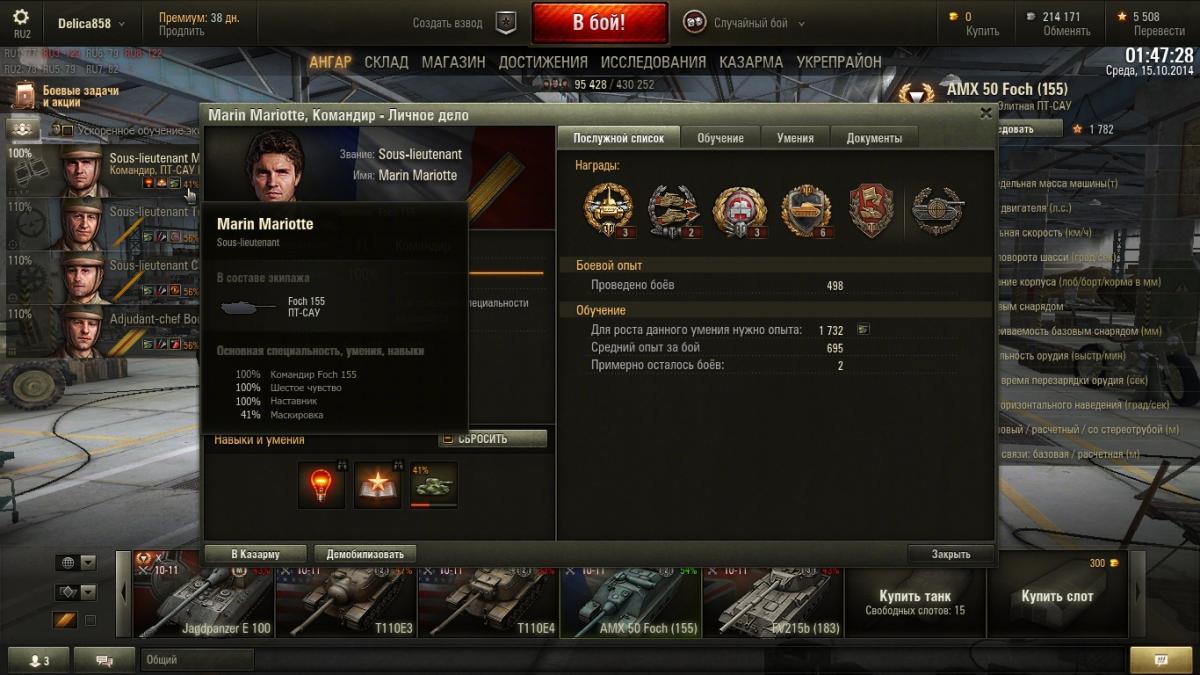 Всем привет! Добрался на днях до ФВ(183). Продал торт, пересадил экипаж, переобучил и ... тут муха сомнения закружилась вокруг, а именно: экипаж британский прошел через 530 боев, а экипаж французский (Фоч 155) прошел 498 боев, но...британцы еще второй перк не прошли, а французики уже третий на 40% изучили. Причем ветку французов я качал с 7 уровня (голос Серба прозвучал в моей голове: - Просто задонать!!!!), а вот бритов качал с самого начала. Экипажи пересаживал за голду т.е. без штрафов. Да и по результативности бриты лучше по моей статистике. В чем кроется сия тайна? зы. Скрины прилагаю, думаю достаточно командиров. http://cdn-frm-eu.wargaming.net/wot/ru/uploads/monthly_10_2014/post-11096129-0-51463800-1413317764_thumb.jpghttp://cdn-frm-eu.wargaming.net/wot/ru/uploads/monthly_10_2014/post-11096129-0-36436700-1413317784_thumb.jpg