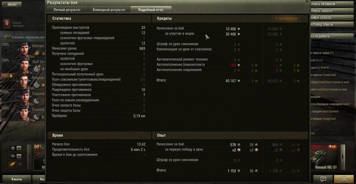 Ребята, сейчас суббота, идет акция "Операция Багратион"... Но вдруг ни с того ни с сего мой Мк1 получает кучки "серебра"! Но получает не всегда. И количество "серебра" за участие в акции (в некой акции) то чуть меньше полученного за бой "серебра", то тютелька в тютельку столько же, а то вообще ничего не дают. Что за акция такая? На скринах видны все три варианта. Все бои победные. Там, где ничего не дали, были ленточки Бронебойщика и еще какая-то. Не могу пока скрины прикрепить, медленный модем... Позже попробую.