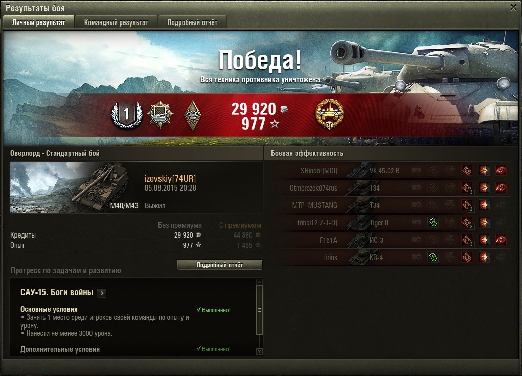 Выполнил так и 15 лбз, недели три мучал, как вариант для тех кто ещё в процессе.... карта оверлод, вышли вдвоем артовзводом 8 лвл, я на м40/43, совзводник на лорке, подбирал всё после меня, в итоге я в топе по урону и опыту