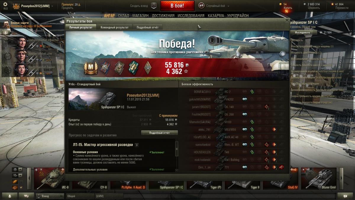 Норм танчик. Мне понравился намного больше чем разведпантера. 4 боя взял Мастера. Заодно и ЛБЗ выполнил.