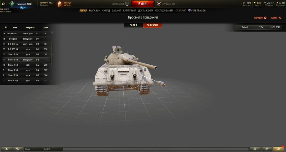 Доброго времени суток. Прошу объяснить как T-54 c расстояния менее ~200 метров с ББ снарядом с пробитием в 219 мм не пробил в корму Skoda T 50. Реплей (время 10:28) и скриншоты во вложении. Повторюсь, именно "Не пробил". Никаких заборчиков или еще чего-то что могло съесть часть бронепробития не было.И да, шкода на момент выстрела (и после него) была жива. Бронепробитие снаряда с расстояния в 200 метров падает с базового 219 мм до 213, с учётом максимально падения пробития в -25% - это 159,75 мм. Ни под какими углами у Шкоды нет корме столько миллиметров. Вот 3D модель танка: https://tanks.gg/tank/skoda-t-50/model Update: большое спасибо ZloyBut и AyalaTheRed за ответы и разъяснения, тему можно закрывать. http://cdn-frm-eu.wargaming.net/4.5/style_extra/mime_types/win_player.gif Шкода танчит кормой 10-28.wotreplay 1,32МБ http://cdn-frm-eu.wargaming.net/wot/ru/uploads/monthly_11_2018/post-11208625-0-72992300-1543267275_thumb.jpg http://cdn-frm-eu.wargaming.net/wot/ru/uploads/monthly_11_2018/post-11208625-0-86025700-1543267280_thumb.jpg http://cdn-frm-eu.wargaming.net/wot/ru/uploads/monthly_11_2018/post-11208625-0-24360800-1543267286_thumb.jpg http://cdn-frm-eu.wargaming.net/wot/ru/uploads/monthly_11_2018/post-11208625-0-15982800-1543267293_thumb.jpg