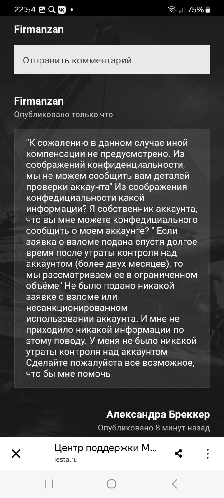 2. Дак Lesta не может доказать мне взлома или чего то подобного. Отговорка в виде "Статья такая то мы не можем давать информацию" полный бред. По сути с любым Аккаунтом могут сделать что захотят, сказать вот те 10кк серебра, удачи???