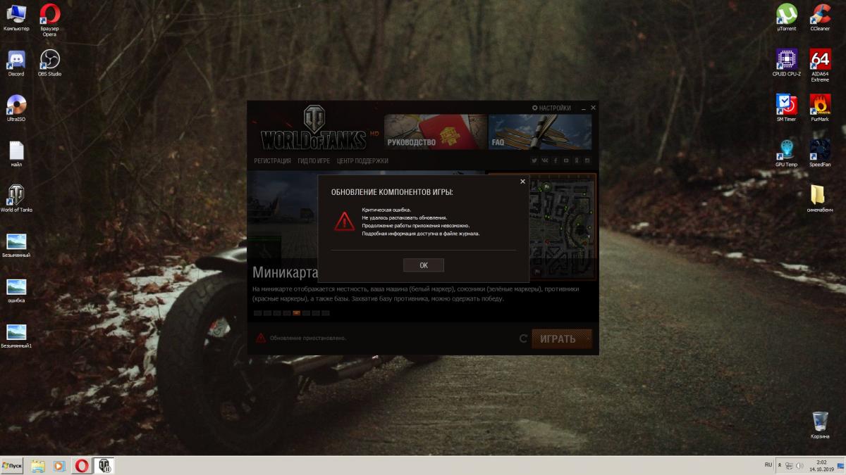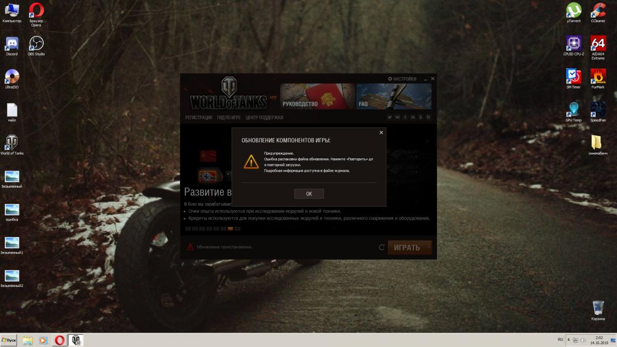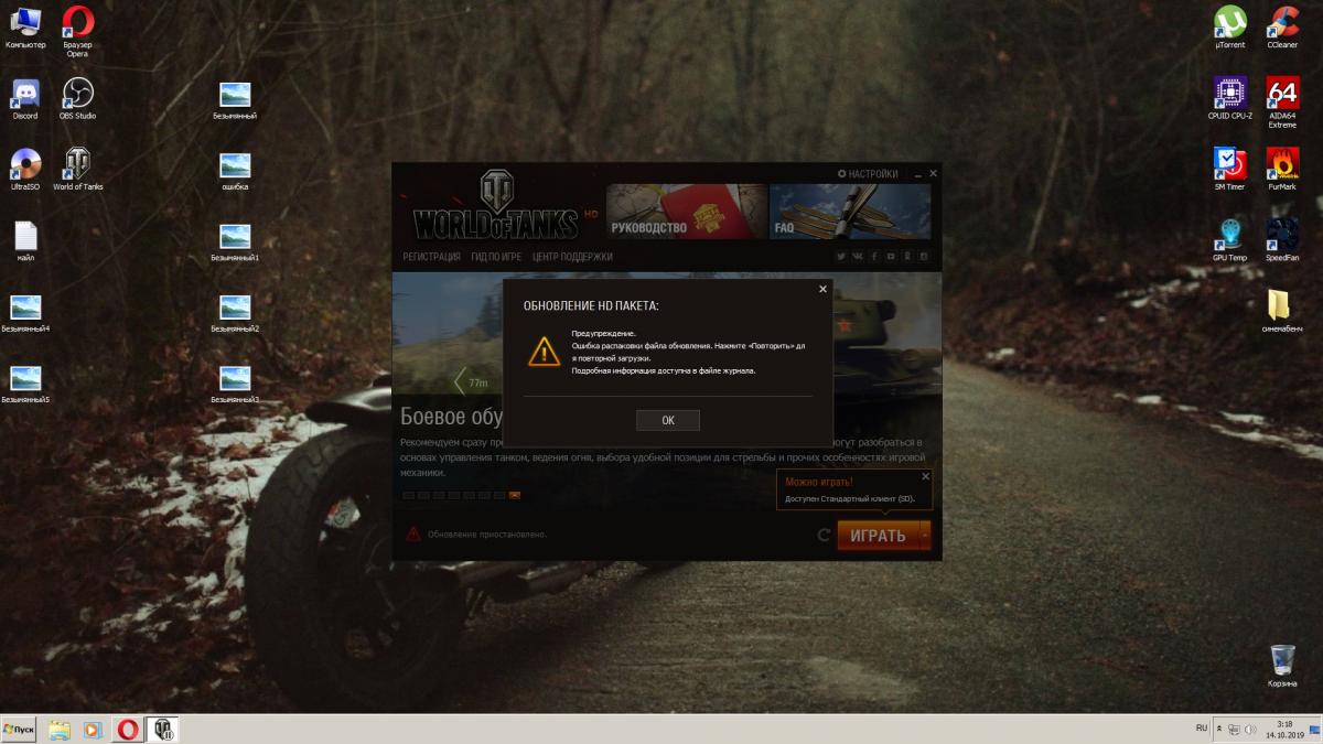 http://cdn-frm-eu.wargaming.net/4.5/style_images/wg/snapback.pngNEVEGDA (14 окт 2019 - 01:54) писал: Рекомендаций в ссылках было много и все перепробовали? Т.е. после проверки Проверка жёсткого диска ошибка не поменялась? сперва нажал повторить вылетела эта ошибка (скрин1) затем нажал обновить (скрин 2) это все после проделанных действий по устранению
