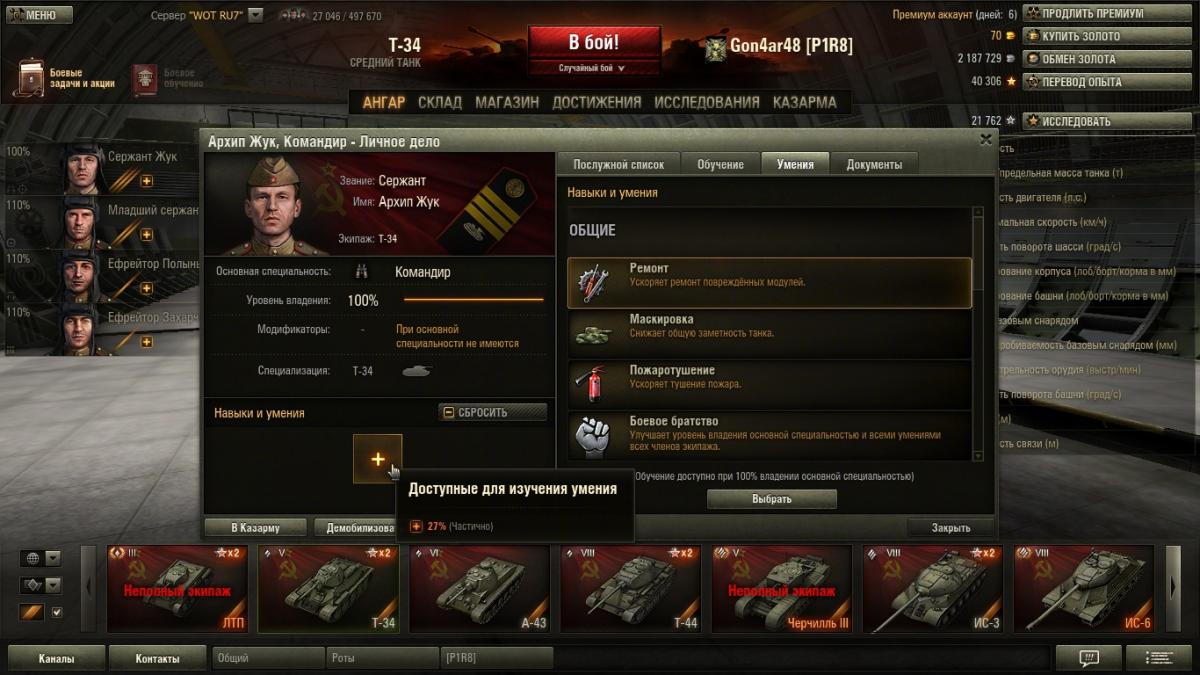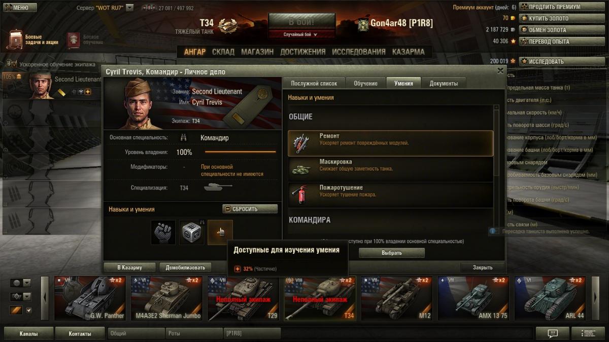 http://cdn-frm-eu.wargaming.net/wot/ru/uploads/monthly_01_2014/post-9483650-0-04696200-1390300779_thumb.jpg У меня вопрос такой. Сколько должно быть нераспределённого опыта экипажа по первому кругу умения чтобы при пересадке за серебро получить 100 % экипаж ? и по второму кругу (третий перк) ? http://cdn-frm-eu.wargaming.net/wot/ru/uploads/monthly_01_2014/post-9483650-0-31835600-1390300843_thumb.jpg