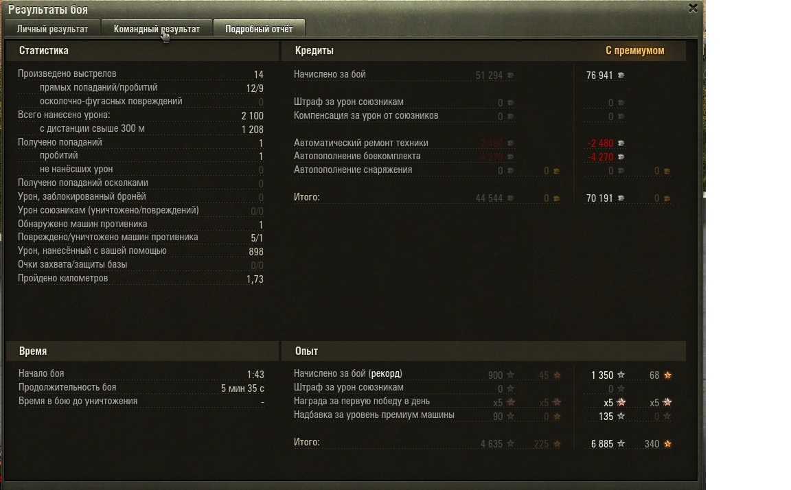 - премиум танк