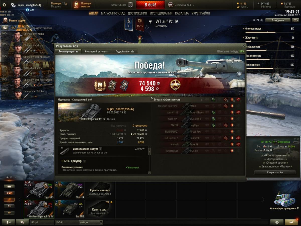 Ура! Вот уж не думала что на вафле реально столько настрелять . http://cdn-frm-eu.wargaming.net/wot/ru/uploads/monthly_01_2017/post-11431180-0-03624400-1483894574_thumb.jpg http://cdn-frm-eu.wargaming.net/wot/ru/uploads/monthly_01_2017/post-11431180-0-08466200-1483894586_thumb.jpg P.S. Если честно у меня надежда была на 704 объект. Купила его и первые бои довольно неплохо на нем настреливала. Но потом что-то случилось и он у меня стал адски косить и сливаться, частенько с 0 урона, меня в общем это выбесило и я его забросила. Решила качать гриля, купила вафлю (которая кстати тоже адски сливалась) и вот пока в топ выкачивала настреляла, даже и не ожидала, повезло если честно .