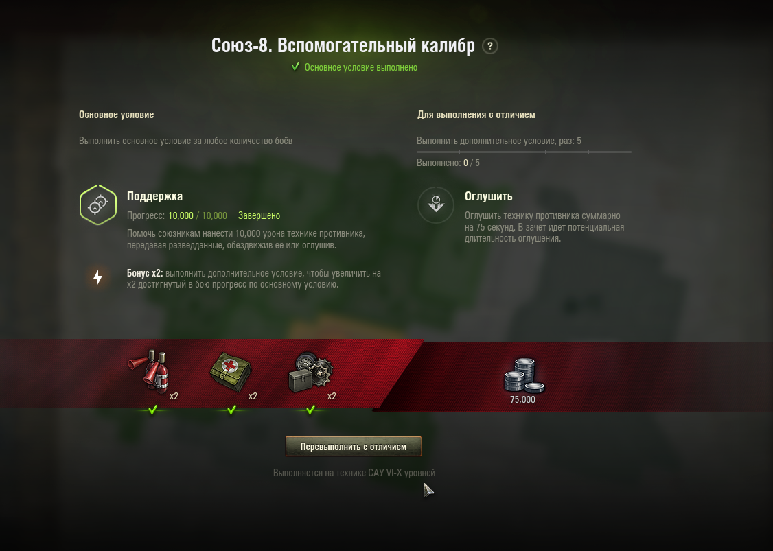 Проблема с задачами, у которых основное условие не требует оглушения(например просто нанесение урона), при этом требуют оглушение для выполнения с отличием. Эти задачи, как пишет клиент игры, необходимо выполнять на САУ 6-10. Ранее такого не было, основное условие можно было выполнить на любом классе техники. Список таких задач: союз-8, блок-11, коалиция-2. Пример задачи - блок-11: основное условие - нанести 35_000 урона, дополнительное - оглушить противника на 75 секунд. Если сейчас захожу в бой на E 75 TS (тт8 германия), то в бою вкладки с этой задачей просто нет. И по итогу боя прогресс по этой задаче не засчитывается. Неделю переписываюсь с техподдержкой. Безуспешно. Каждый раз отвечает новые люди и противоречат друг другу. Хотелось бы наконец разрешить этот инцидент. Ответьте пожалуйста на 2 вопроса: 1. Это баг? Или это фича? 2. Если так и задумано, то вопрос - ЗАЧЕМ?! С каких пор у нас арты недостаточно в боях, что необходимо как-то мотивировать игроков играть на этом классе техники?! Ведь наоборот изначально специально было сделано так, чтобы все танки лбз 2-ого сезона можно было получить не играя на арте. Да, для этого нужно выполнять все лбз-15 с отличием и вкладывать бланки, но зато не надо играть на арте. И просьба ко всем прочитавшим - не поленитесь, зайдите в клиент и проверьте пожалуйста задачи. У указанных выше задач есть приписка (выполняется на САУ 6-10). Скриншоты приложил. Если у вас также, ПОЖАЛУЙСТА отпишитесь в этой теме, необходимо привлечь внимание разработчиков.