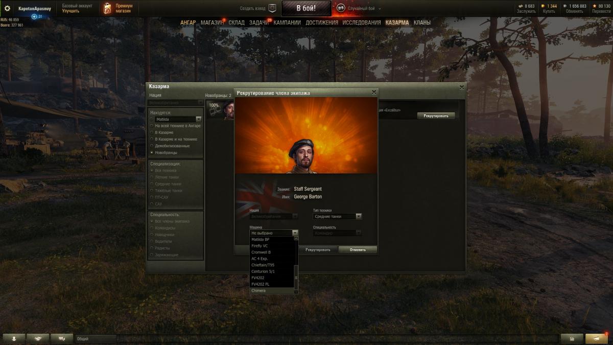 http://cdn-frm-eu.wargaming.net/4.5/style_images/wg/snapback.pngMakedonsky (01 июл 2020 - 22:20) писал: рекрутов можно посадить только на прокачанную/прем/коллекционную/акционную технику ты много британских ст прокачал? Хотел на матильду, а еще лучше на cavalier. Так понимаю - не получится. т.е. - только на элитный? (полностью прокачанный)