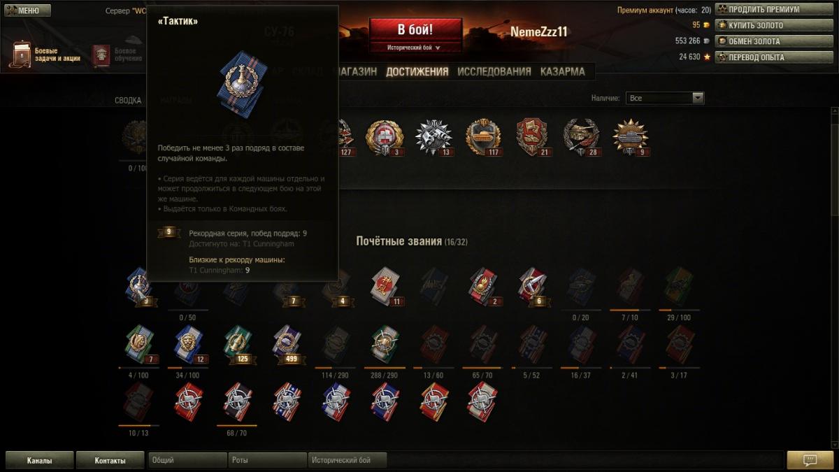 3. На официальном сайте в личном кабинете неактивна медаль "Тактик". Хотя в клиенте игры она есть.