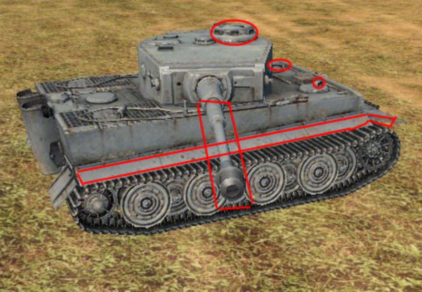 Здесь мы обсуждаем тактику игры на танках в будущем режиме "исторические бои", ограниченные возможностями игры: а это изначально аркадный режим. Про историю битв есть специальная тема, туда и пишите. Тактика на Т-34 в "исторических боях"/ руководство по пробитию Тигра пушкой Л-11 (теория и практика в трене) Первый пост будет постоянно редактироваться и дополнятся. Разработчики проводили тестирование, и оптимальным посчитали баланс 3 тигра на 15 Т-34 Производство Т-34 образца 40 года - пушка Л-11, Т-34 образца 41,42 годов - пушка Ф-34 не нашел,с какой пушкой были танки, участвовашие в сражениях с тигром,- Л-11(сложновато будет играть) или/и Ф-34. скорее всего Ф-34 (Тнаки Т-34 выпуска 41 и 42 годов, на которые с завода устанавливалась пушка Ф-34). т.к.у Л-11 только подкалиберный снаряд может пробить тигра в корму и борт. Руководство по пробитию Тигра пушкой Л-11, ББ и ОФ снарядами. (Приборы наблюдения опустим) ОФ выводятся из строя: Наводчик, Радист, Мехвод, Пушка ББ: Пушка Учтите что в пушку нужно стрелять по указанным красным обводам - дальше к башне идет маска орудия!!! http://cdn-frm-eu.wargaming.net/wot/ru/uploads/monthly_01_2014/post-9655022-0-92140200-1390736802_thumb.jpg http://cdn-frm-eu.wargaming.net/wot/ru/uploads/monthly_01_2014/post-9655022-0-58089100-1390736824_thumb.jpg http://cdn-frm-eu.wargaming.net/wot/ru/uploads/monthly_01_2014/post-9655022-0-18856700-1390736835_thumb.jpg http://cdn-frm-eu.wargaming.net/wot/ru/uploads/monthly_01_2014/post-9655022-0-81783600-1390736837_thumb.jpg http://cdn-frm-eu.wargaming.net/wot/ru/uploads/monthly_01_2014/post-9655022-0-91945500-1390736839_thumb.jpg http://cdn-frm-eu.wargaming.net/wot/ru/uploads/monthly_01_2014/post-9655022-0-10024400-1390736850_thumb.jpg Л-11 ББ пробивает только борт Тигра - тонкая полоска между верхним бронелистом и гусеницами (обведено на картинке). Стрелять под прямым углом с близкого расстояния http://cdn-frm-eu.wargaming.net/wot/ru/uploads/monthly_01_2014/post-9655022-0-59000400-1390736830_thumb.jpg http://cdn-frm-eu.wargaming.net/wot/ru/uploads/monthly_01_2014/post-9655022-0-58288300-1390736852_thumb.jpg Легко выводятся из строя Пушка и наводчик, что затрудняет тигру стрелять на дальние дистанции и дольше сводиться, сложнее вывезти из строя мехвода, только стреляя с близкого расстояния по приборам наблюдения фугасами. Тоесть в первую очередь нужно выводить из строя дуло и наводчика, 1 т -34 светит, остальные закидывают из ОФ критуя дуло и Контузя экипаж.