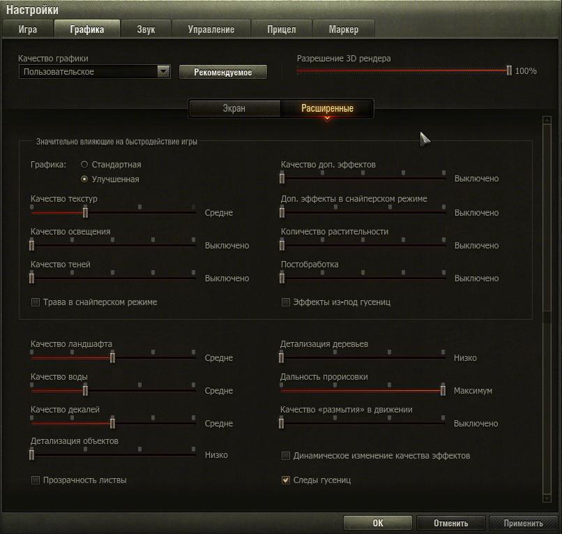 Да, графика стандартная, клиент SD, всё на минималках. На улучшенной после последнего улучшения графики (уж не помню патч, возможно 1.0) вообше до 10 фпс, так что улучшенную не юзаю уже давно. Карта насколько я знаю на стандартной графике не нагружается сильно (MSI Afterburner показывает 70-85%), а вот проц в этом режиме всегда под 100%. Я и давно слышал что стандартная графа процессорозависима. Проц разгонял до 3,5Ггц было намного лучше, но дохнет блок питания быстро (((. Всё-таки странно фпс при игре через батник DX9 сильно проседает порой, даже не знаю почему так, тупо в 20-25 кадров порой сваливается. При игре через лончер, комфортный фпс от 35 до 70, за исключением снайперского режима в густой растительности, там и с эмуляцией DX11 падает до слайдов.
