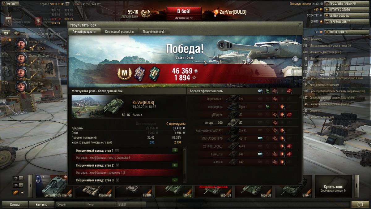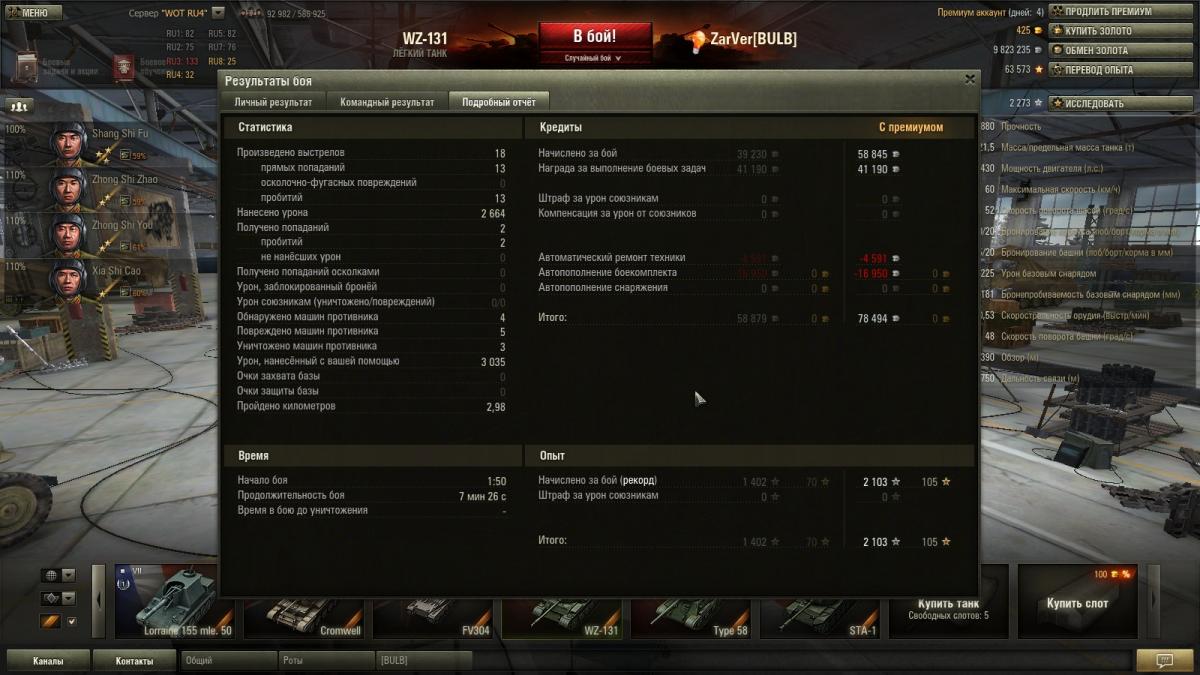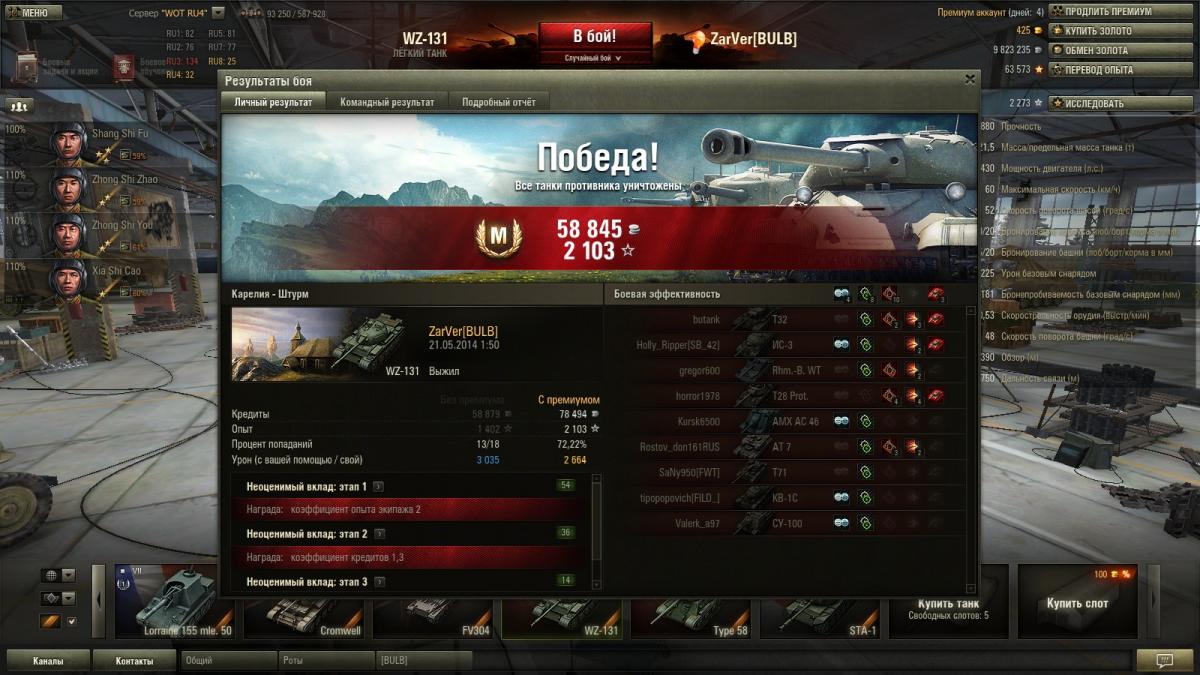 Только начал прокачивать этот танк, еще даже топовые орудия не выкачал, танк уже радует. Стараюсь дать первичный засвет по разъезду, вражеских танков. Дальше действую как ст внизу списка, ныкаюсь, подсвечиваю, отвлекаю, гуслю.. Уже получился один не плохой бой: http://cdn-frm-eu.wargaming.net/wot/ru/uploads/monthly_05_2014/post-9714779-0-42824800-1400657654_thumb.jpghttp://cdn-frm-eu.wargaming.net/wot/ru/uploads/monthly_05_2014/post-9714779-0-53386600-1400657662_thumb.jpghttp://cdn-frm-eu.wargaming.net/wot/ru/uploads/monthly_05_2014/post-9714779-0-91474100-1400657687_thumb.jpg Реплей