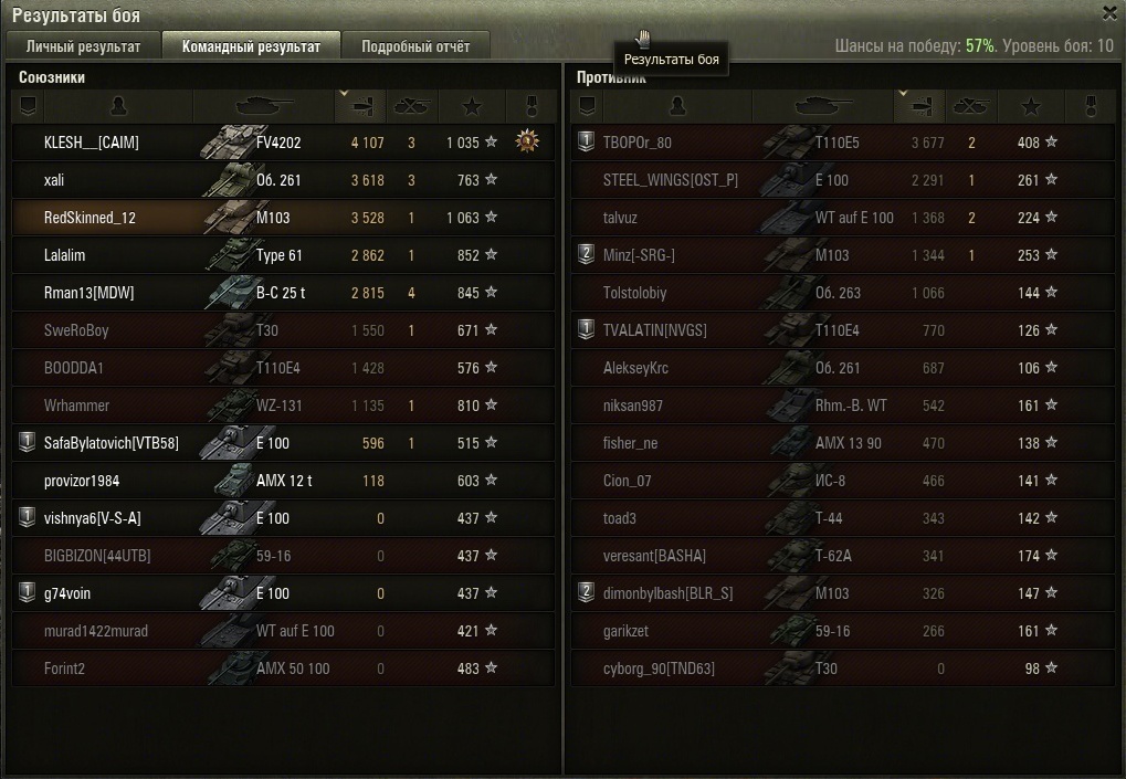 Знаю, но Е75 жалко продавать, на своём уровне неплохая машина. Позавчера случайно поставил на него предтоповое орудие (до этого катался только с маусганом), накормил фрицев шоколадом (убрал аптечку), и получил бронированную СТ-шку 9-го уровня (Т-54 нервно курит в сторонке). С пробитием 285 мм (на голде) и КД = 7.20 сек - это просто кайф, "тараканы" и прочие быстро бегающие насекомые лопаются как мыльные пузыри. Периодически встречаю в рандоме "воинские подразделения" (как на скриншоте), которые пытаются доказать обратное и катаются только на бб и фугасах .