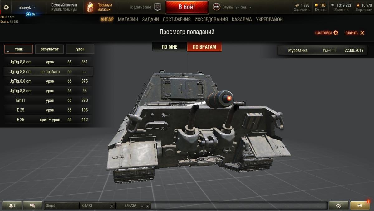 http://cdn-frm-eu.wargaming.net/wot/ru/uploads/monthly_08_2017/post-11773064-0-79872200-1503392513_thumb.jpgНе пробил Ягу8,8 на ВЗ-111(премиумном) бб, находясь сзади неё. По скриншоту видно, что снаряд попал в крышку МТО с бронёй 40мм. По моим расчётам, учитывая правило 2-х калибров, приведённая броня 40мм крышки не превосходит 112мм(брал предельный случай вхождения снаряда по касательной), тогда как минимальное пробитие бб на этом танке 131мм. Ссылка на реплей: http://wotreplays.ru/site/10380261#murovanka-ahsoyl-wz-111