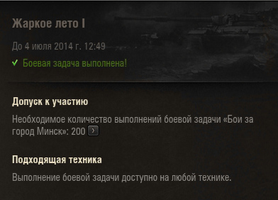 Выполнил первый этап: http://cdn-frm-eu.wargaming.net/wot/ru/uploads/monthly_07_2014/post-9872456-0-90636400-1404444670_thumb.jpg http://cdn-frm-eu.wargaming.net/wot/ru/uploads/monthly_07_2014/post-9872456-0-53980800-1404444671_thumb.jpg Тем не менее в боевой задаче Жаркое лето по прежнему требует выполнить первый этап. http://cdn-frm-eu.wargaming.net/wot/ru/uploads/monthly_07_2014/post-9872456-0-22136100-1404444672_thumb.jpg так и задумано?