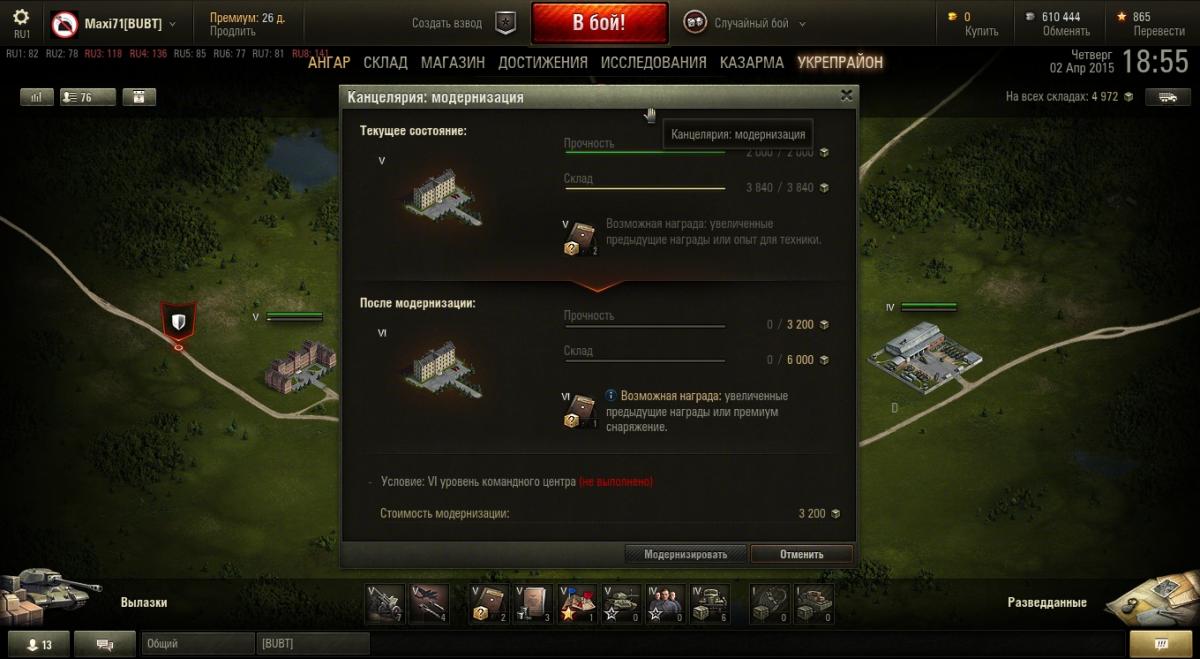 Всем Привет -подскажите пожалуйста , у многих кланов вижу командный центр 5 лвл а другие здание более высокого уровня .Вопрос как это сделать если мне для повышения какого-нибудь здание пишет -надо сперва повысить командный центр. Обьясните плиз как это сделать http://cdn-frm-eu.wargaming.net/4.3/style_emoticons/wot/Smile_blinky.gif