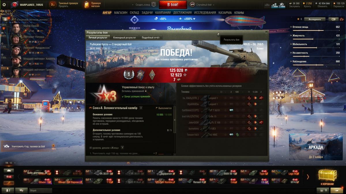 Не выполнилась задача номер 2 на об.260. В задаче написано,что нужно нанести 5000 урона и вывести из строя 3 внутренних модуля или члена экипажа. По итогу боя я все требования выполнил,но задача не зачлась. Вот ссылка на реплей: http://tankireplays.lesta.ru/site/14221283#rybackaya_buhta-warplanes_74rus-ob_ekt_268_variant_5
