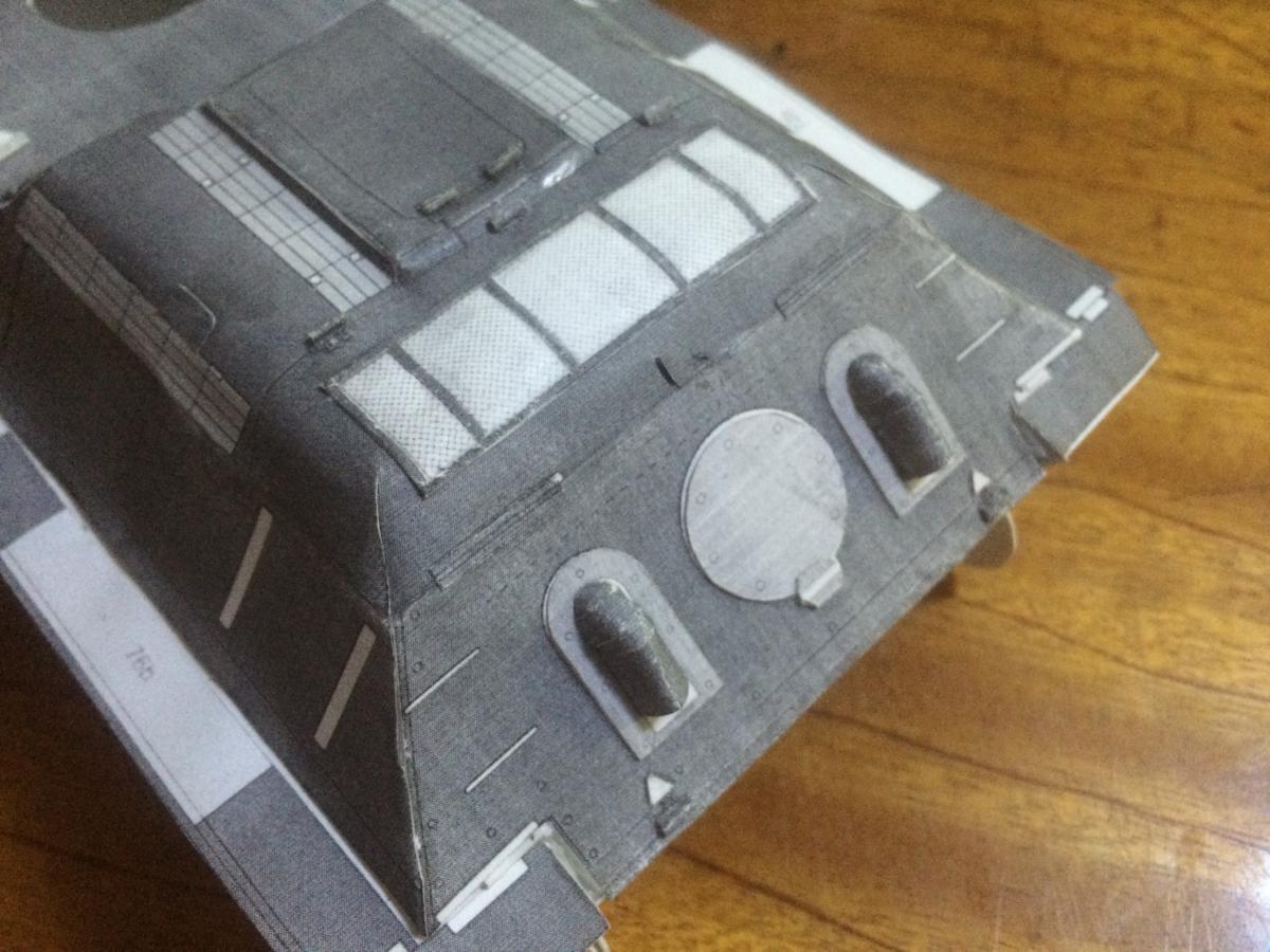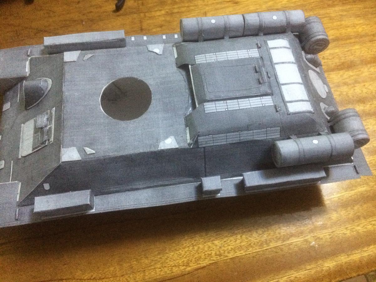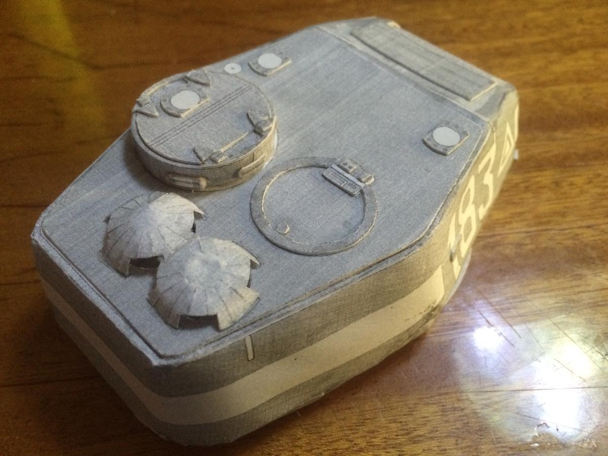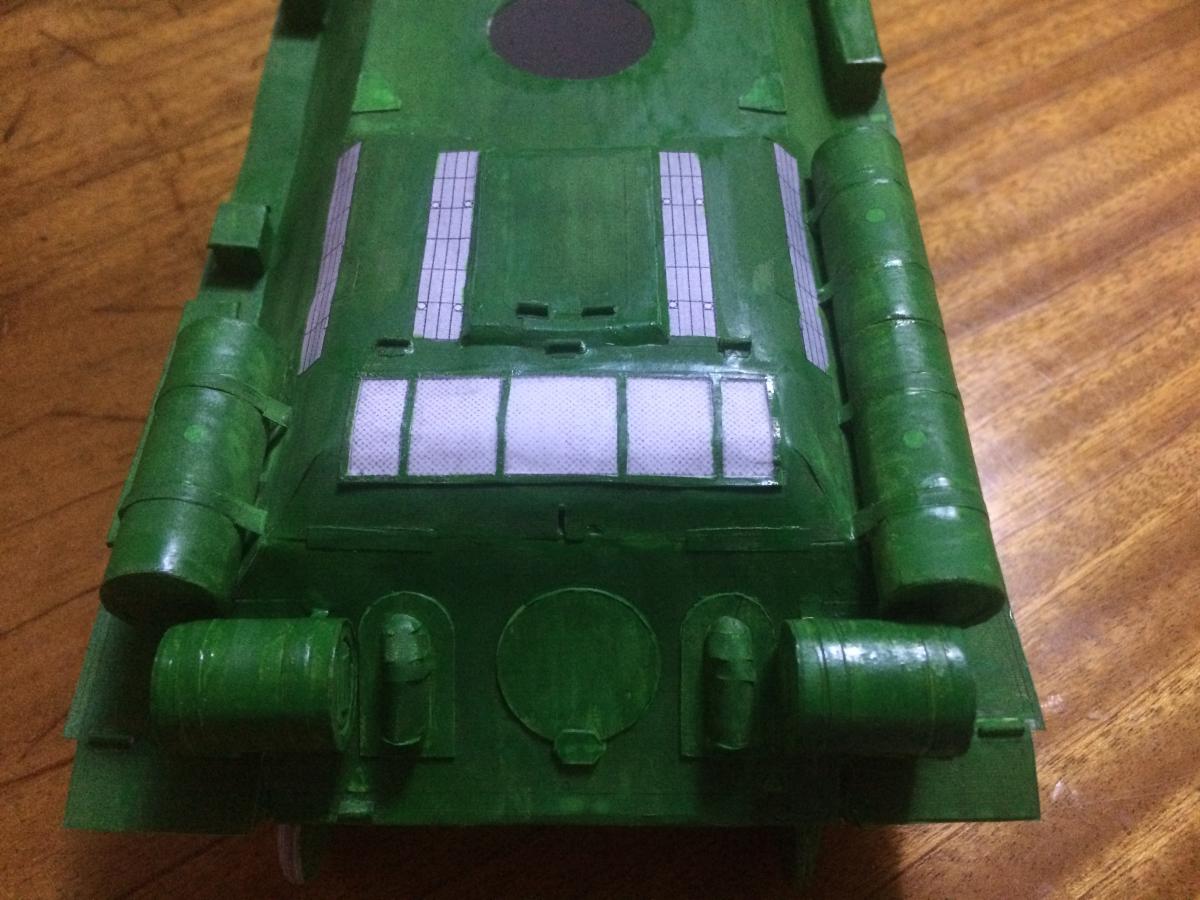 Красил гуашью, без грунта. Думаю второй слой нанести потом, посмотрю как будет. На счет шпатлевки тоже думал, как раз скрыть все неровности можно было, но смутило то что на бумагу вряд ли пристанет,да и потом тоже надо наверно как то грунтовать. А траки муторно довольно делать, примерно с пол часа 1 трак делал.
