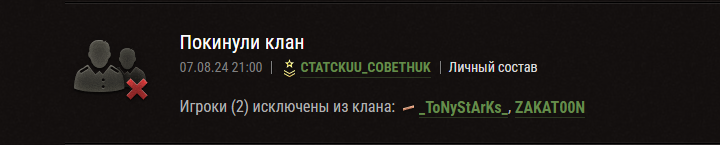 12. Добрый день. Хотел бы задать вопрос на тему исключений из клана во время ивента. Играю по 10 часов на гк с начала ивента, как и многие другие соклановцы. Под самый конец ивента зашли неадекватные замы командира и начали исключать людей + намекать на то, что исключат из клана, если не получат "благодраность в голде за что, что они держат нас в клане". Катали полностью своим составом новичков. Можно ли найти управу на таких, если в основном все общение было в дискорде?