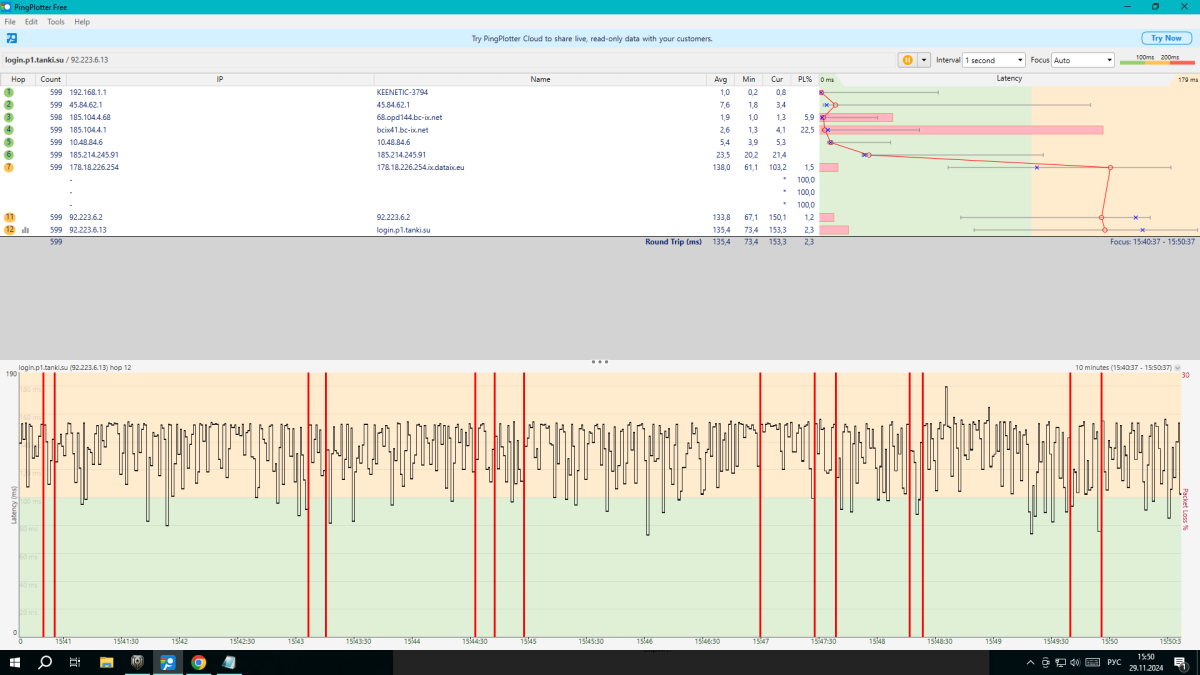Жуткие фризы такое впечатление что бой происходит под водой изредка подлагивает, до 1.0 таких проблем не наблюдалось в паре с пинг плоттером клиет вообще отказываеться работать..постоянно зависает на несколько секунд... но несколько боёв отмучал для наглядности. login.p2.worldoftanks.net(31.03.18).wgc login.p2.worldoftanks.net.zip