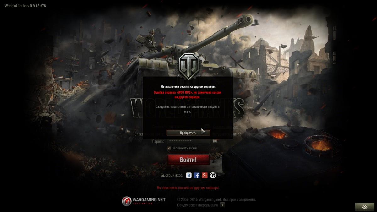 2ой день не могу зайти в игру. Выдаёт то ошибку "сервер перегружен" (разумеется, очередь на вход доходит до меня, а потом всё останавливается на полчаса-час, а после меня кидает в конец очереди), то ошибку "не закончена сессия на другом сервере", причём на всех 9ти серверах. Турнир из-за этого проиграли. На прошлой неделе тоже. Хочу видео очередное пилить про танки - нет возможности. Прем аккаунт тает просто так. Вы даже представить себе не можете, насколько у меня бомбит. Так скажите пожалуйста, кто-то вообще обратит внимание на эту проблему, это вообще когда-нибудь решат? И сколько ещё дней према я потеряю, прежде чем починят сервера или я решу бросить эту игру?