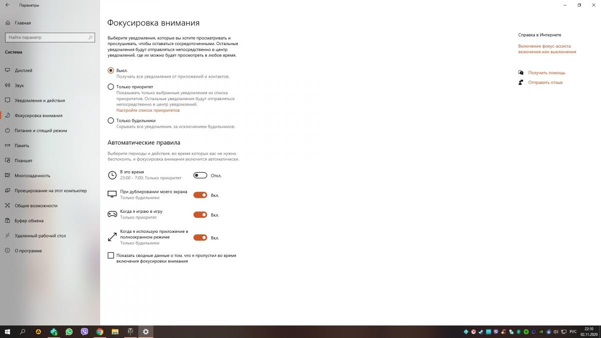 Здраствуйте скажите что можно сделать, уже надоело, игра постоянно сворачивается при уведомлениях , особенно вибера на windows 10. Приложил скриншоты где показано , что у меня уведомления отключены, фокусировка внимания включена. Но это ни помогает. Если кто то напишет в вибер игра сразу свернется на рабочий стол, не смотря на то что в виндолсе стоит фокусировка внимания, что бы при полноэкранном режиме или когда в игре, ни что не беспокоило. Почему то к примеру в игре CS GO работает все отлично, никакие уведомления ни сворачивют игру, а вот ваши эти танки , не смотря на то что они запускаются в полноэкранном режиме, все равно сворачиваются. Что можно сделать подскажите чтоб не сворачивались танки, а то надоело уже?