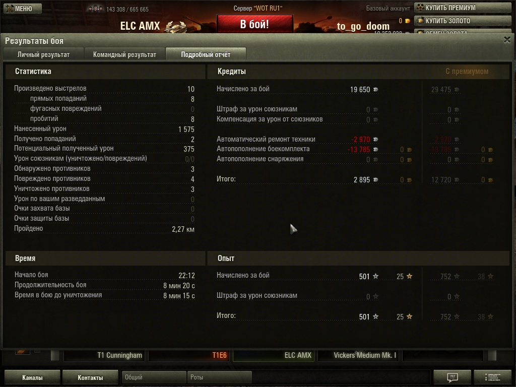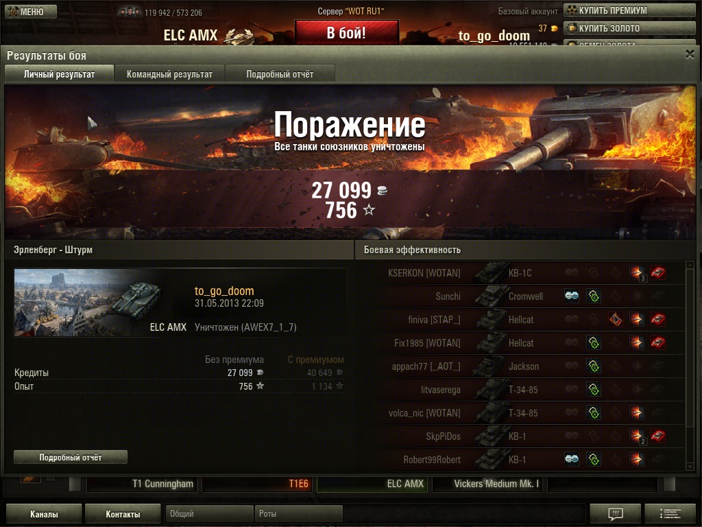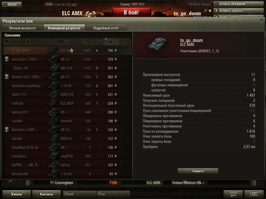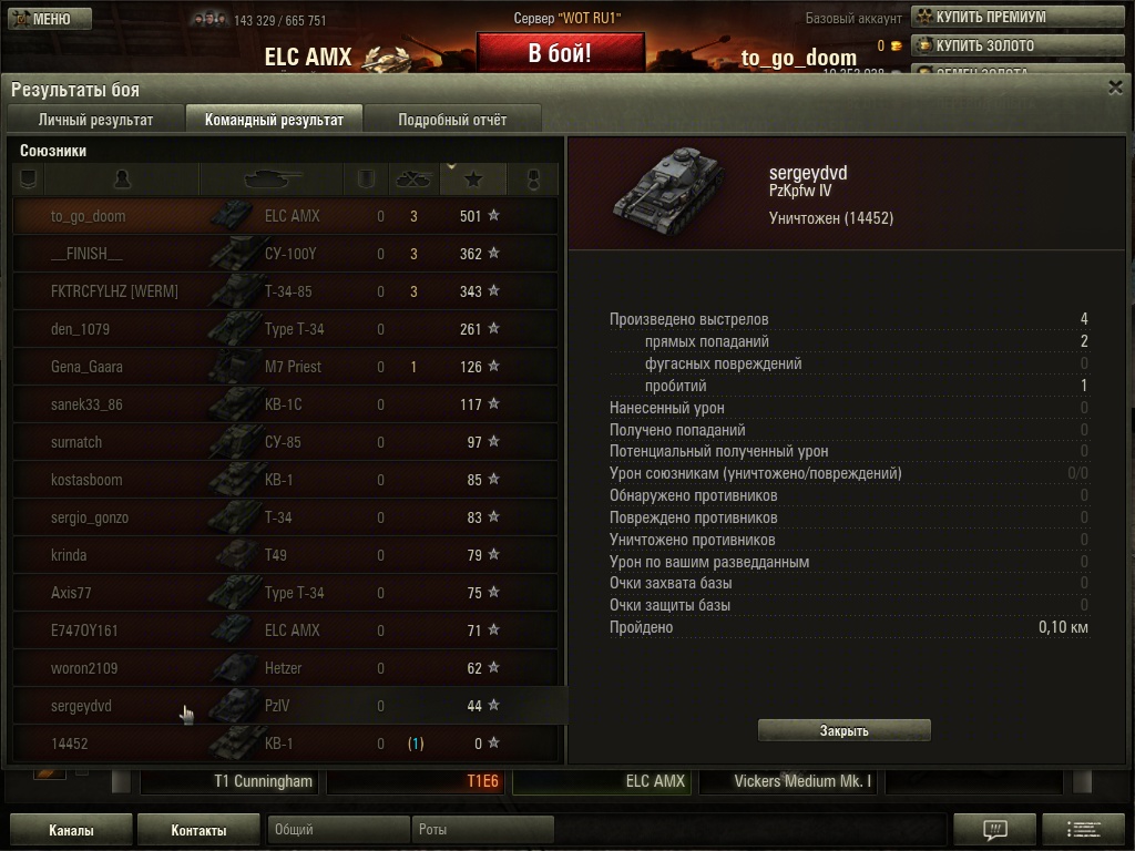 Степи, встречный. Продували 4:8. Потом началось жуткое везение на ёлке. Обратите внимание на круг сведения на сбитом орудии и я ни разу не промазал. По дороге встретил тех кого нужно, и не встретил тех кого не нужно. Рикошет. Победа, Спартанец. Можно конечно потом побольше настрелять дамага и медалек разных, а потом ещё больше, и ещё. Но такое везение редкость. http://wotreplays.ru...mx_2012-elc_amx Арте отдельное спасибо.
