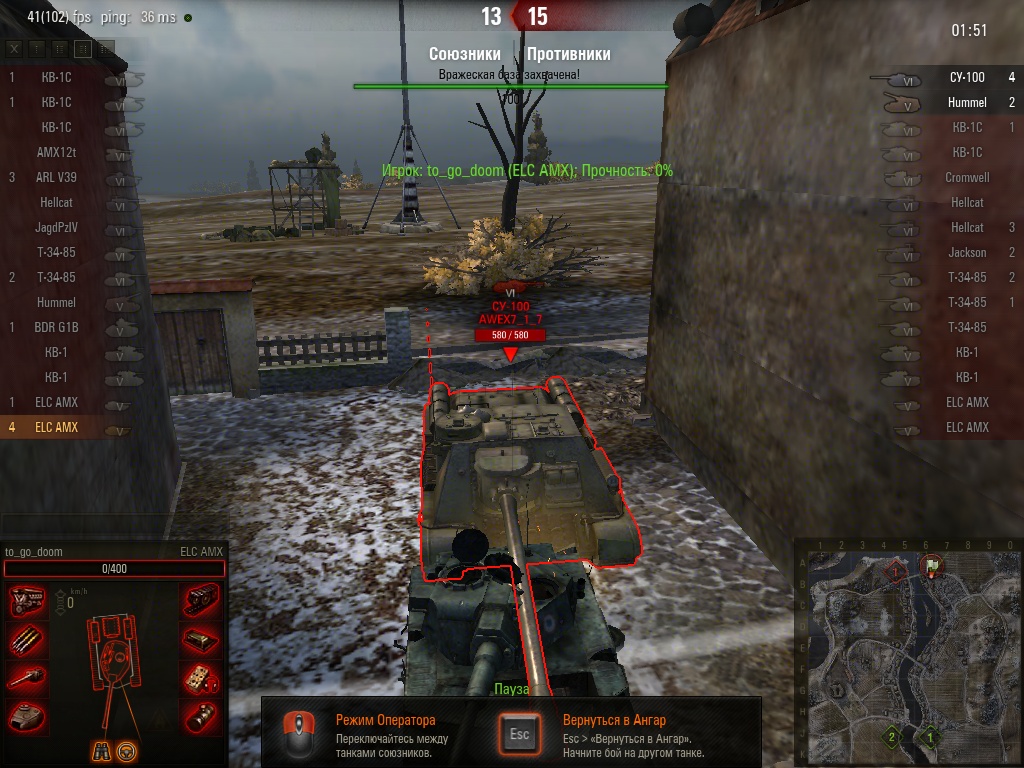 Вы как то там решите проблему, раздражает очень. Счётчик дополнительный после 100%, с выводом на экран или не выводить надпись "база захвачена" пока этот таймер не истечёт. Вроде три секунды прошло после 100%, а продули. http://wotreplays.ru...13e0ff11bf590f3