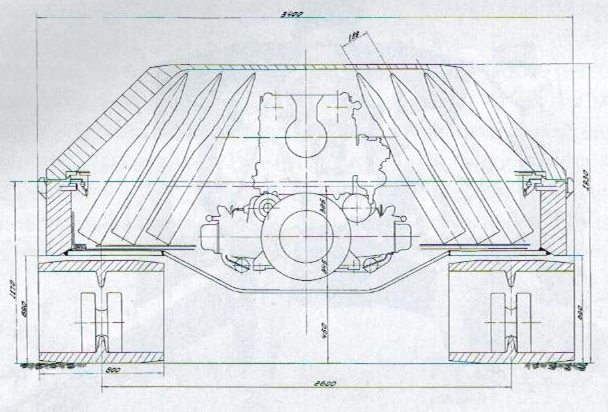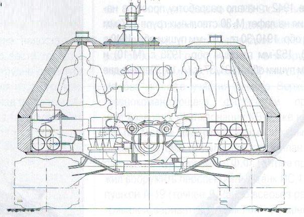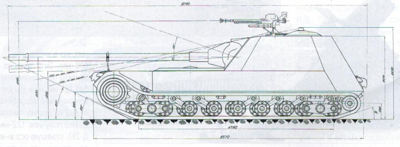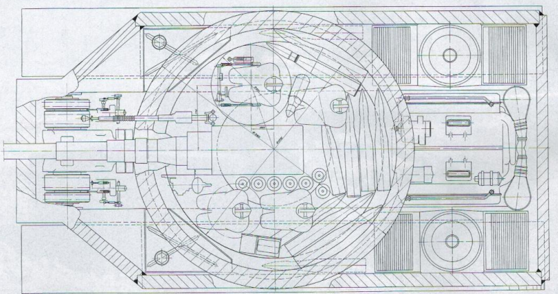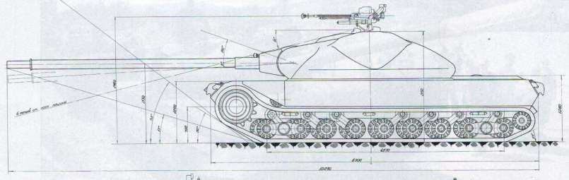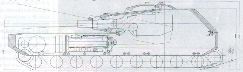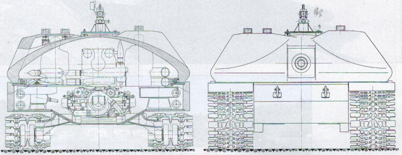 Весной 1949 года в ОКБ ИК СВ во главе с А.Ф. Кравцевым приступили к разработке семейства максимально облегчённых тяжелобронированных (или тяжёлых) танков под индексом К-91. Предполагалось, что эти танки способны будут заменить собой как средние так и тяжёлые танки. В ходе эскизной проработки по теме К-91 были созданы два варианта танка и одна самоходная установка. Все варианты вооружались 100мм пушкой Д-46Т, спаренным пулемётом ДШК и были оснащены двигателем В-64, предком двигателя 5ТДФ. Так же во всех конструкциях было решено разместить водителя в боевом отделении танка, в башне или рубки. Это позволило серьёзно уменьшить высоту танков, до 2300 сантиметров у первого варианта, 2140 сантиметров у второго варианта и 2280 сантиметров у САУ. http://cdn-frm-eu.wargaming.net/wot/ru/uploads/monthly_02_2014/post-1180627-0-27612400-1392634900_thumb.png Поперечный разрез и вид спереди К-91 Наиболее проработанным был первый вариант машины, с боевым отделением в середине корпуса, и разнесённым отделом МТО. Трансмиссионное отделение размещалось в носовой части корпуса, моторное в кормовой. Весь экипаж танка располагался в башне. Водитель располагался справа от орудия на поворотной платформе, за ним размещался заряжающий. Наводчик располагался слева от орудия, командир размещался за ним. http://cdn-frm-eu.wargaming.net/wot/ru/uploads/monthly_02_2014/post-1180627-0-69100300-1392635103_thumb.png Проект тяжёлого танка К-91 с кормовым расположением МТО http://cdn-frm-eu.wargaming.net/wot/ru/uploads/monthly_02_2014/post-1180627-0-22552500-1392635242_thumb.png Продольный разрез первого варианта К-91 В башне танка справа от пушки устанавливался спаренный 12,7-мм пулемёт ДШК. Второй, зенитный ДШК крепился на крыше в станке турели с повторным основанием, скопированным у зенитной турели ИС-4. При необходимости ведения огня из зенитного пулемёта он устанавливался над люком командира танка.Весь экипаж танка из четырех человек предполагалось разместить в боевом отделении. Рабочие места наводчика и командира поместили слева от казенной части орудия, а механик-водитель и заряжающие должны были располагаться справа от него. Особенности работы механика-водителя привели к появлению идеи создания поворотной платформы. При помощи этого механизма предполагалось обеспечить правильное ориентирование водителя вне зависимости от угла поворота башни.Для тяжелого танка К-91 с задним расположением двигателя была разработана оригинальная гусеничная ходовая часть. Общая высота гусеничного движителя оказалась сравнительно небольшой, поскольку полезный объем корпуса почти полностью разместили над гусеницами, а не между ними. На каждом из бортов танка предлагалось устанавливать девять опорных катков с торсионной подвеской. При этом индивидуальную подвеску должны были иметь только центральные катки. Пара передних и пара задних должны были соединяться коромыслом, закрепленным на балансире. Вместо поддерживающих роликов в составе ходовой части предусмотрели специальные опоры, напоминающие лыжи. Для правильной работы движителя меньшей высоты предусмотрели прижимной ролик, расположенный над передним опорным катком и предназначенный для подачи гусеницы к ведущему колесу.http://cdn-frm-eu.wargaming.net/wot/ru/uploads/monthly_02_2014/post-1180627-0-63660200-1392635373_thumb.png К-91. Вид в плане Передача крутящего момента от двигателя к трансмиссии осуществлялась с помощью двух редукторов, по одному у двигателя и трансмиссии, и карданного вала, проходившего под вра