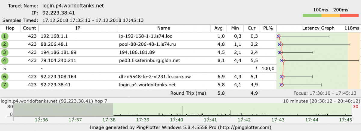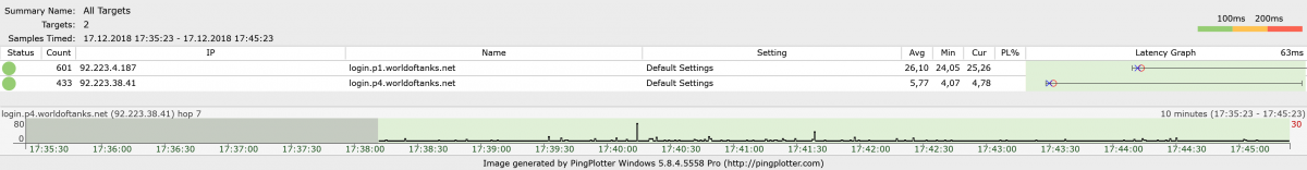Доброго времени суток. Столкнулся со следующей проблемой - выбрасывает из боя и из ангара в рандомном порядке с появлением сообщения: "Потеря соединения с сервером". Выбрасывает в любое время, может несколько раз за бой. Без разницы с модами или на чистом клиенте. Интернет - кабель, 100 Мбит/с. Отчёт прилагаю. Заранее благодарю.